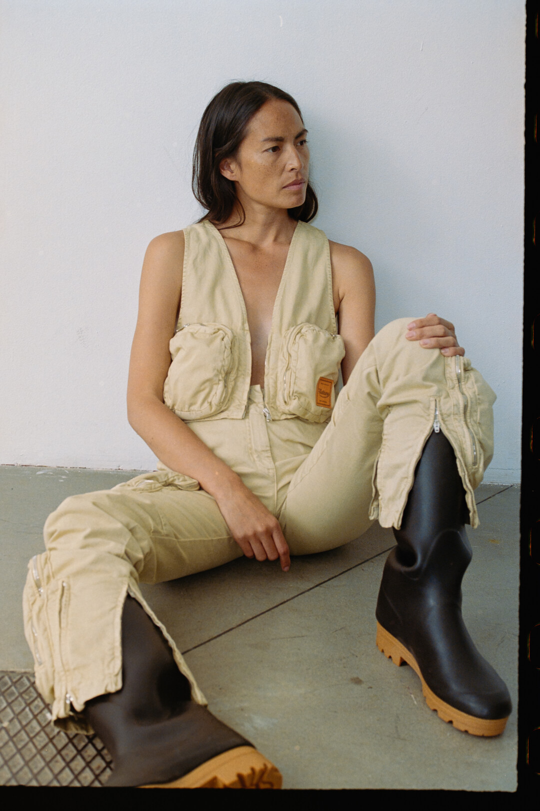 Худрук марки Haikure и ветеран итальянского деним-движения Мауро Грифони учел все пункты современной повестки: если потертость, то рукотворная, если прорези, то в самых точных местах, если экологичность, то со всеми справками. Джинсовые и вельветовые брюки (образцово мешковатые!), рубашки (с карго-кармашками!), куртки (стеганый оверсайз!), юбки (мини!) и панамы марки производятся по всем законам этики на итальянской фабрике C & S. Одежда Haikure только притворяется понятным кэжуалом, ее актуальный дизайн, эко-осознанность и при всем этом беспечный вайб полюбились модницам вроде Майи Вайе, Линды Тол и Иды Шуннессон. Название марки тоже не лыком шито, оно объединяет в себе японское haiku и окончания близких создателям понятий nature, pure и future. В таких вещах хоть на литературные чтения, хоть в экологическую экспедицию.