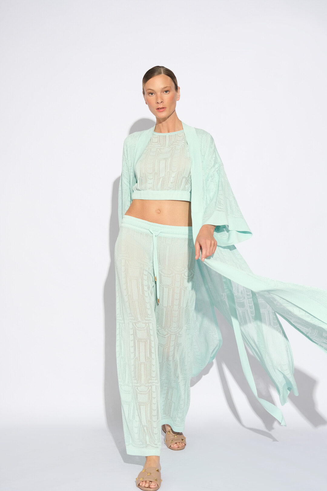 Локальные виртуозы трикотажа Free Age предлагают украсить (и усовершенствовать!) ваш отпуск. Топы, брюки, шорты и кардиганы-кимоно в оттенках идеального пляжного отдыха — аквамариновом, пенно-белом, закатно-лиловом и коралловом — почти ничего не весят, разнятся по степени ажурности и легко собираются в капсулы. Вещи сделаны из вискозы: они не мнутся (не понадобится искать утюг по всему острову) и моментально сохнут (не придется уходить с пляжа в дурацких мокрых пятнах). С такими вводными предлагаем мыслить шире: будем носить кардиганы и брюки в поездках и перелетах (удобно и в меру прозрачно), миксовать кружевной аквамарин с плотным кобальтом (не существует сочетания моднее), а топы и шорты прибережем для заветного петербургского лета, которое (в среднесрочной перспективе) все же наступит.