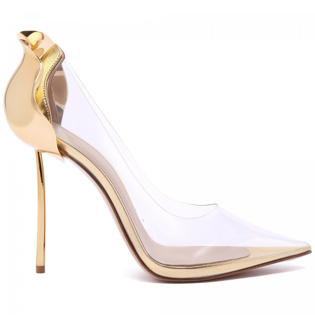 Адаптируем тренд на прозрачность, оставаясь на обувной фэшн-высоте: миксуем с будуаркорными комбинациями туфли Le Silla с виниловыми вставками либо держим наготове сетчатые Paul Andrew. Помним про остромодный металлик: роялистские золотистые оттенки Miu Miu мэтчим с перьевыми полушубками, а полихромные Amina Muaddi на каблуке-рюмке храним для градиентных комбинаций в духе коллаборации Jean Paul Gaultier и Кайли Дженнер.