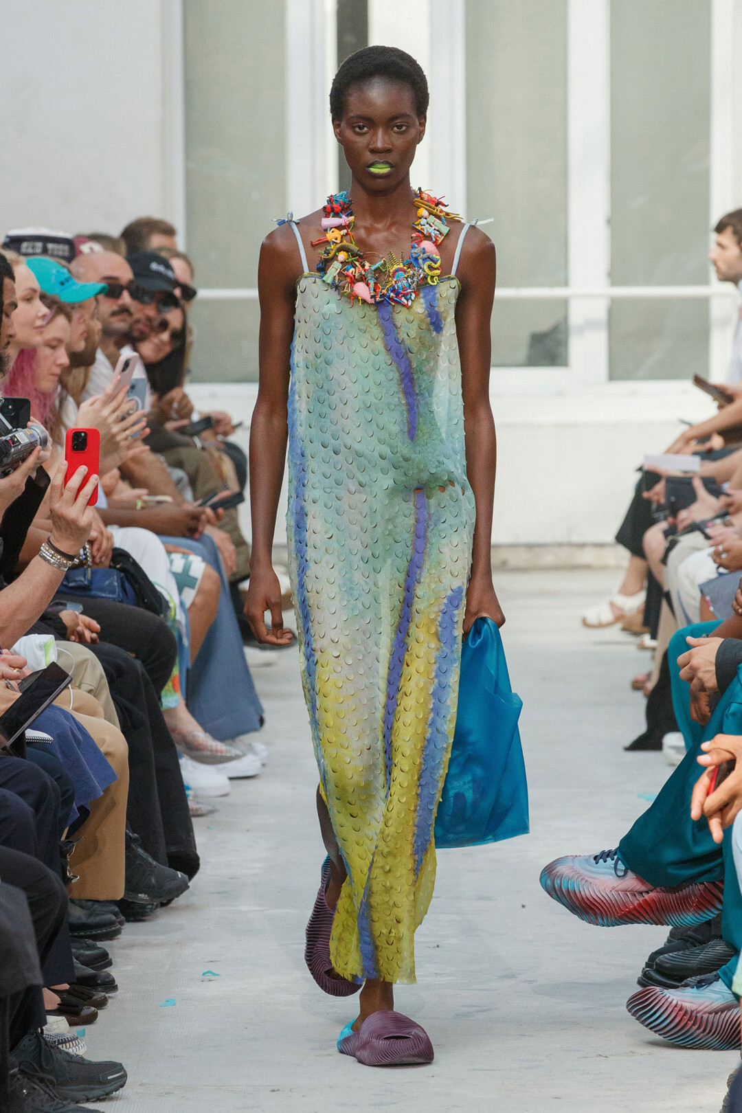 Фиксируем бум прозрачных платьев, как у Nensi Dojaka! Но мы ведь в Петербурге, тут у нас все на полутонах: выходим в полупрозрачной чешуйчатой комбинации от дико модных и экологичных Botter (прикрывшись пушистым свитером и стейтмент-колье!).