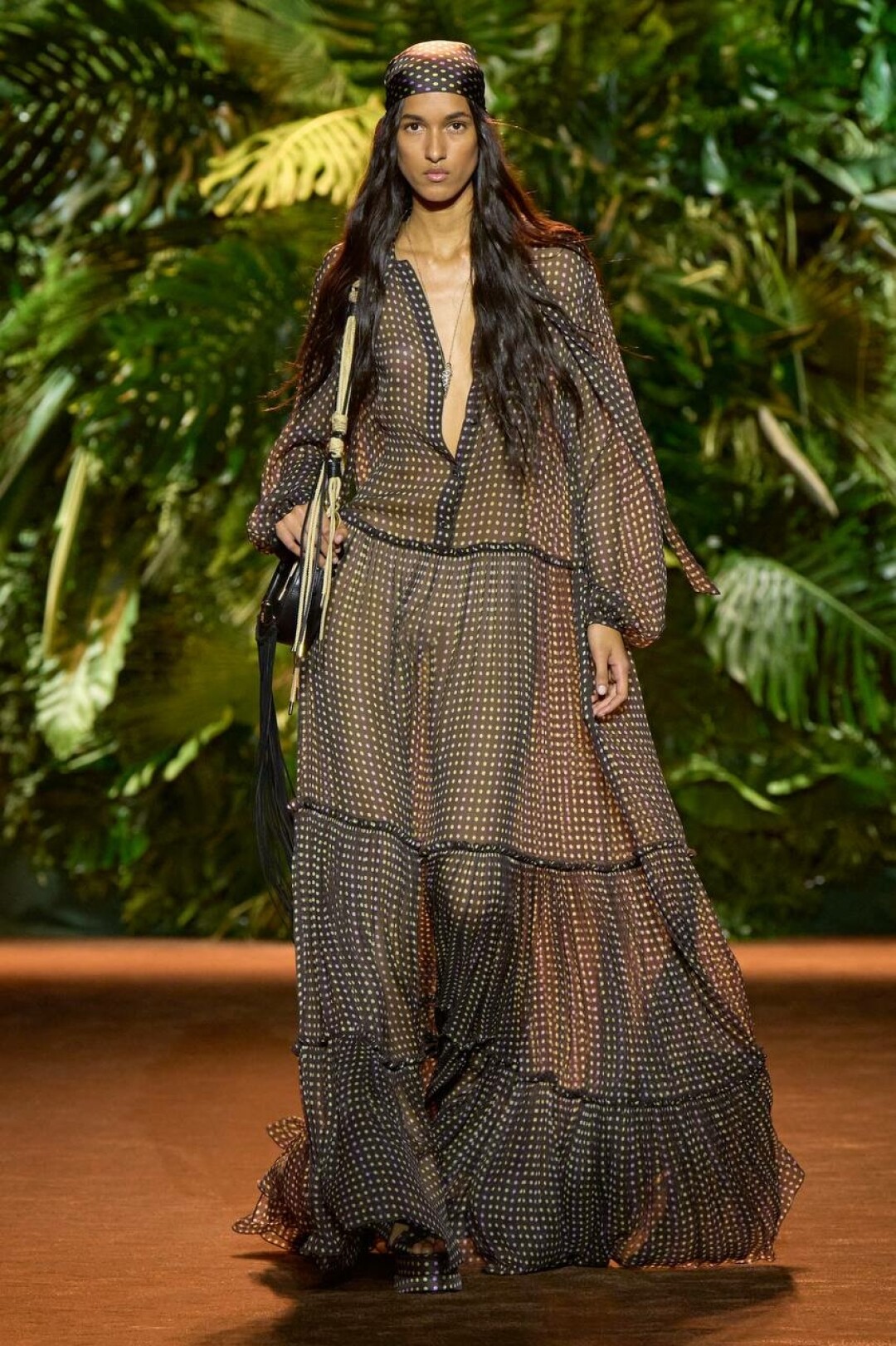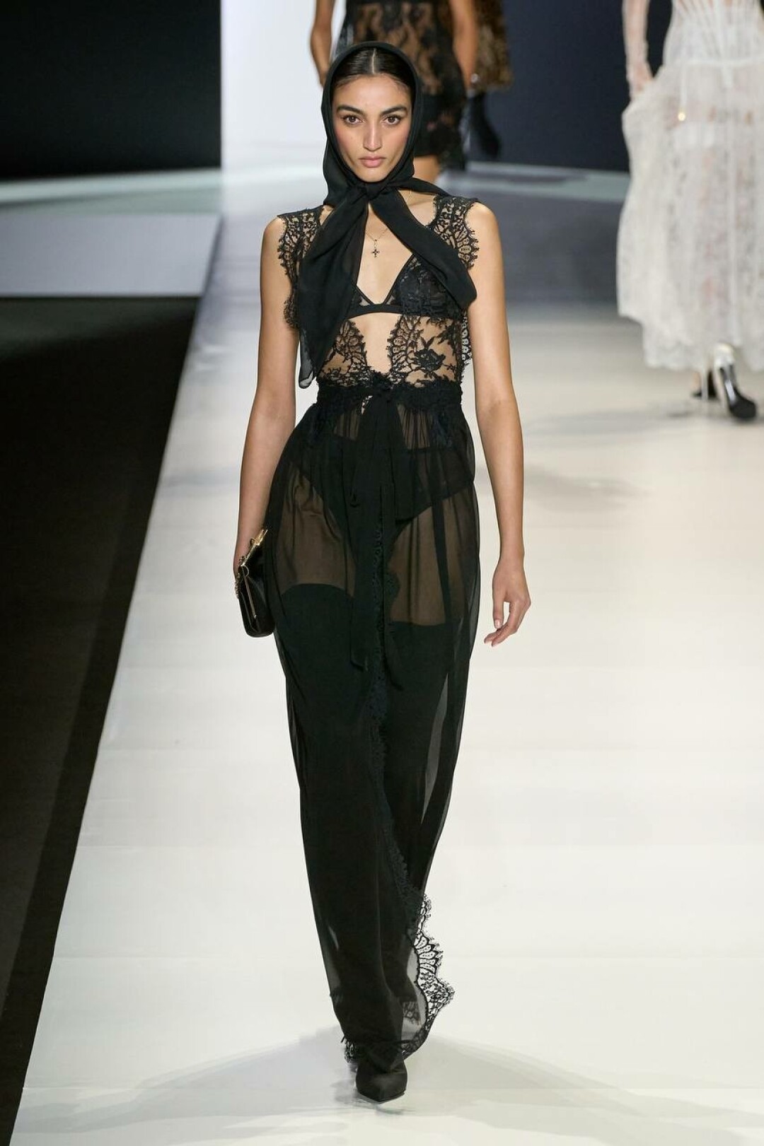 Недавний юбилейный показ Jacquemus FW'24 пестрел отсылками к годаровскому «Презрению». Не обошлось и без главного аксессуара 60-х (привет, Брижит!) — платка, плотно повязанного вокруг головы. Его популярность в этом сезоне предсказывали еще на весенне-летней Неделе моды. Тогда Dolce & Gabbana обыграли косынку в образе итальянской mob wife — при поддержке кружева и леопарда. Тренд на бохошик, вернувшийся с подачи Чемены Камали из Chloe, подхватил Roberto Cavalli и предложил носить шелковый платок с полупрозрачным макси-платьем. А Шарлотт Ноулз и Александр Арсено из KNWLS вспомнили нулевые и сочинили из платка дюрагу, замиксовав ее с белой майкой и микро-шортами из денима.