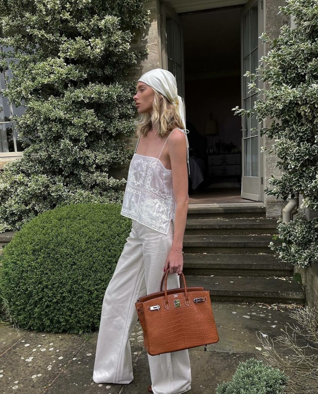 Икона стиля Леандра Медин выгуливает платок в тотал-луке из денима вместе с трендовыми капри, инфлюэнсер Камиль Роу примеряла образ babushka и повязала косынку под подбородком в тандеме с кардиганом-кроше, а актриса Хантер Шафер вышла на каннскую дорожку в костюме фэшн-селянки (в лучшем смысле слова!). Берем пример и носим платки всюду — от бассейнов «Охта Парка» до террасы «Сада» и бурлеск-вечеринок в «Шуме».