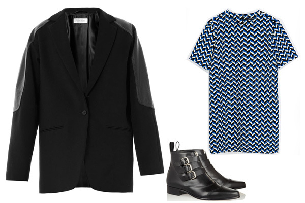 Жакет MaxMara, около 40 000 рублей; платье Zara, ботинки Tabitha Simons