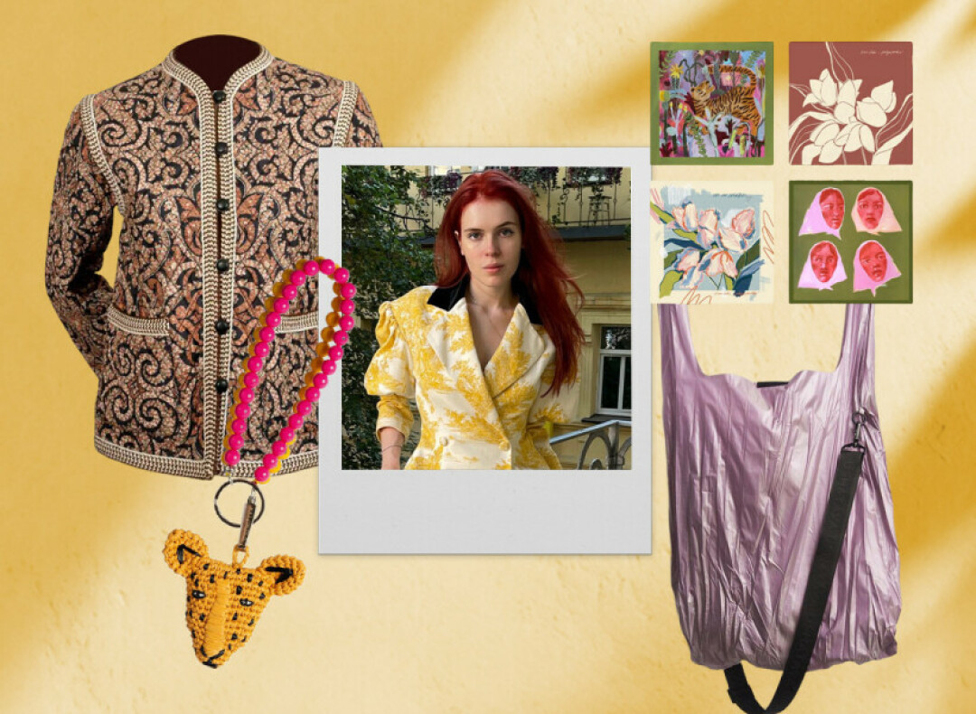 Собирает для Марии Миногаровой луки от петербургских локалов и приручает дикие принты в собственном бренде Colomeinysh.