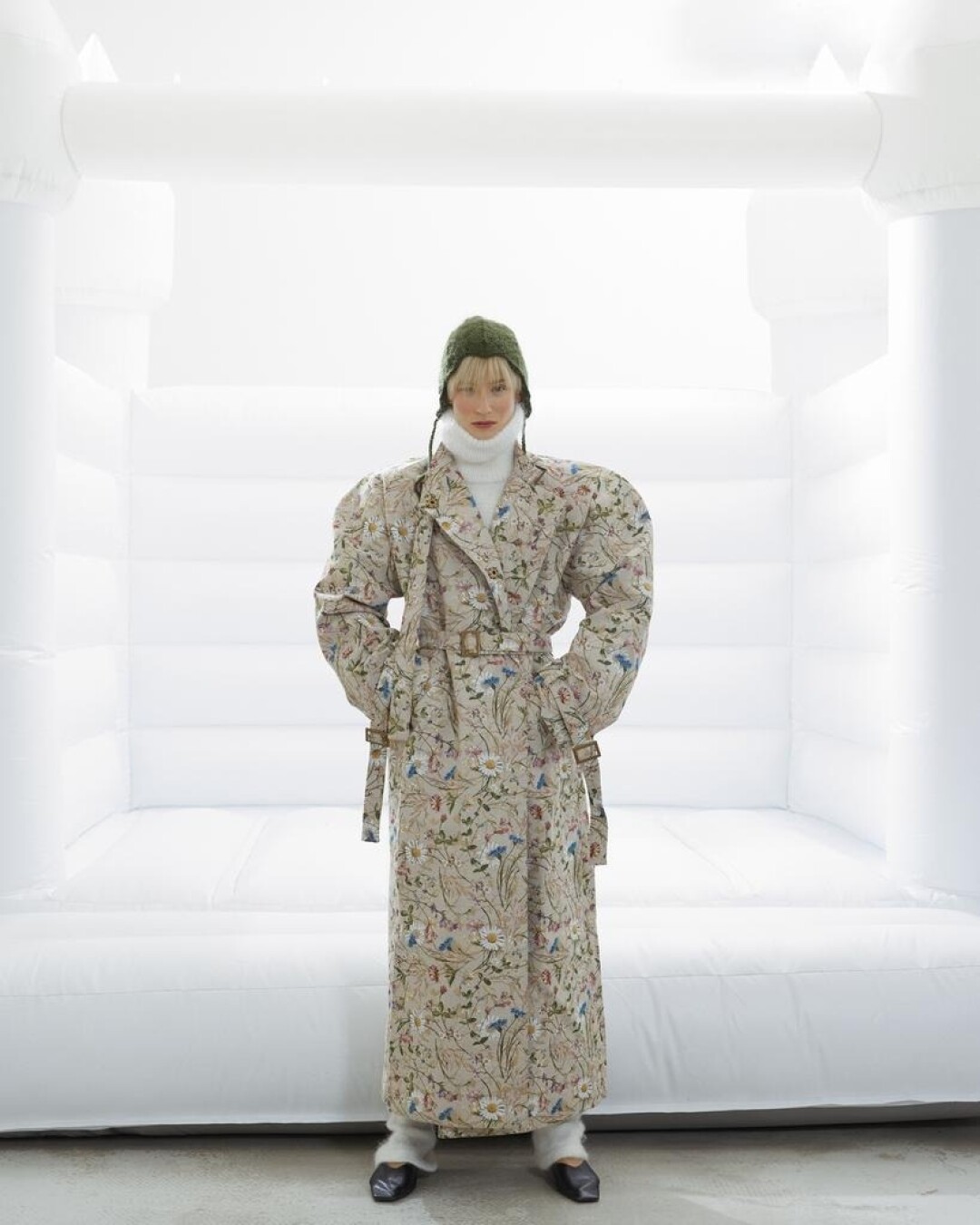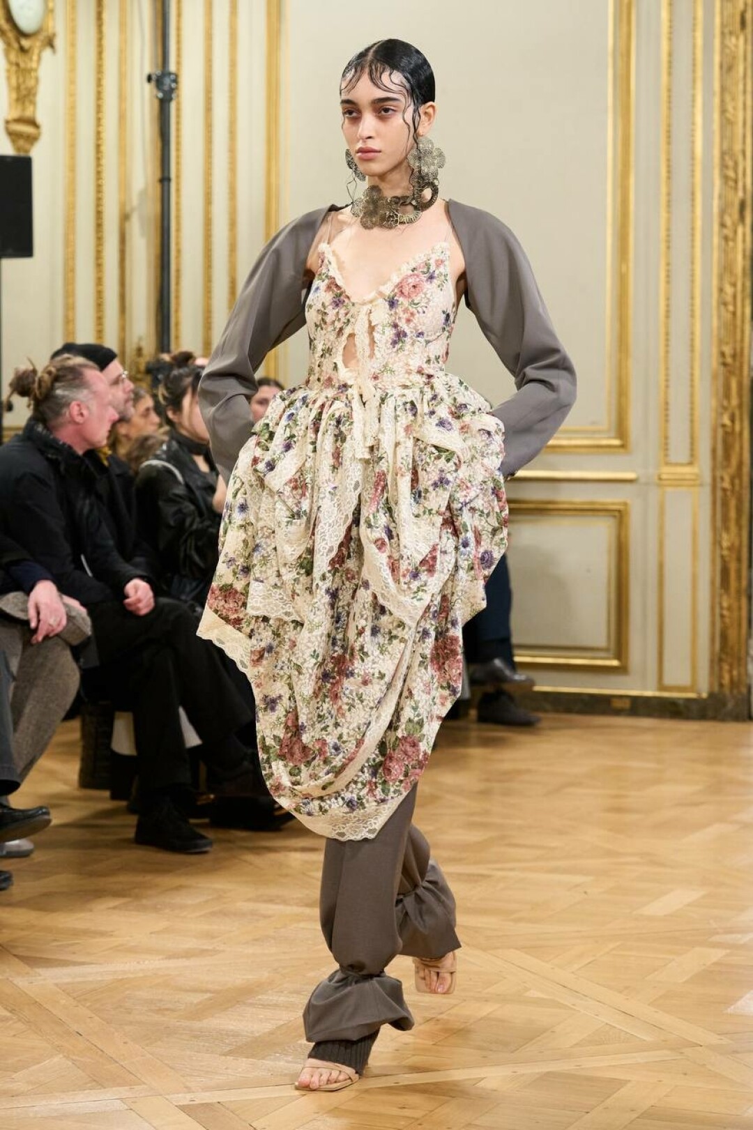 Оттачиваем girl math и приспосабливаем летнее платье в цветочек к осенне-зимнему сезону по фэшн-методичке: Демна Гвасалия в Balenciaga миксует флористическое макси с деконструктивистской шубой, Миучча Прада украшает полупрозрачное миди пушистым цветочным узором и сочетает его с жокейскими сапогами, Жульен Доссена в Rabanne утепляет пэчворк-комбинацию свитером, а Рок Хванг в Rokh женит пасторальный сарафан с кружевами с костюмными брюками и рукавами из той же ткани. При желании меняем fall floral dress на гибрид платья и пальто — Люси и Люк Мейер из Jil Sander вслед за стегаными покрывалами отшили шерстяные одеяла (что-то похожее видели у РЖД).