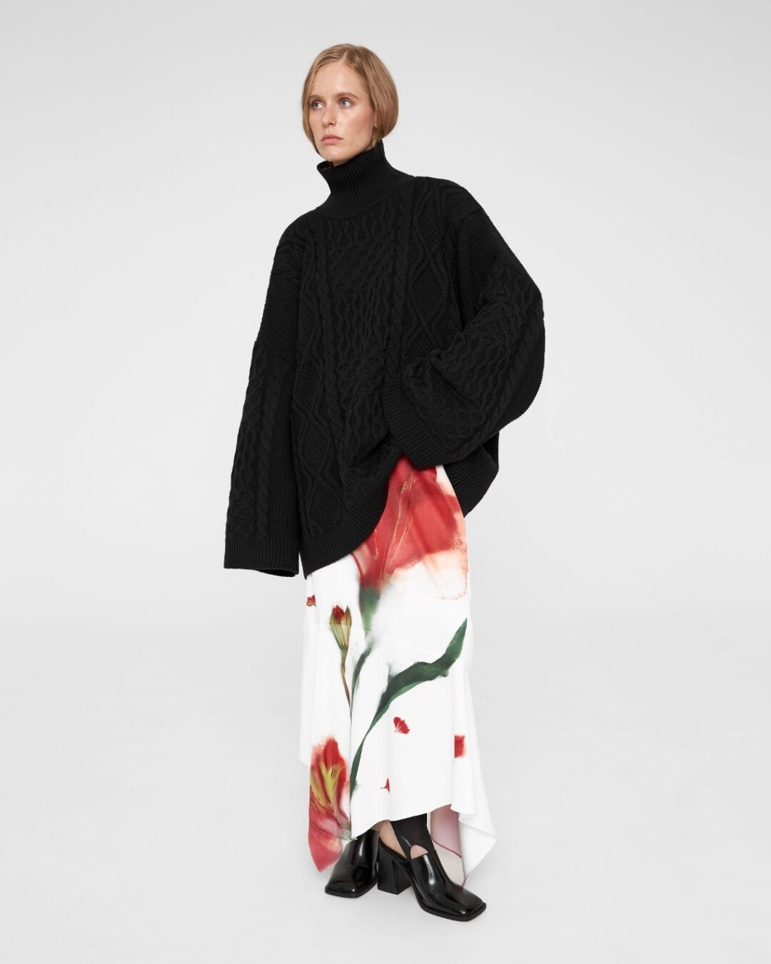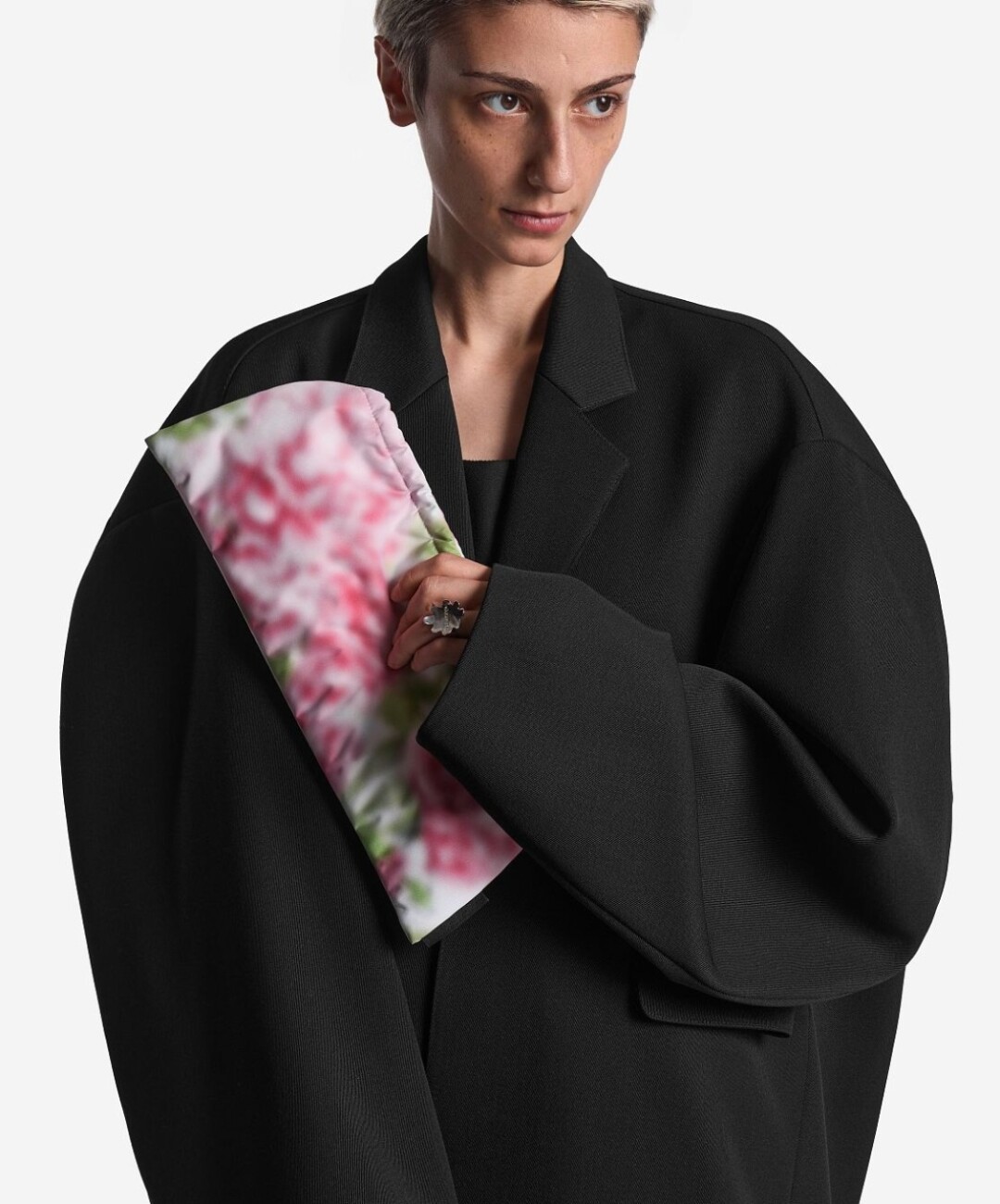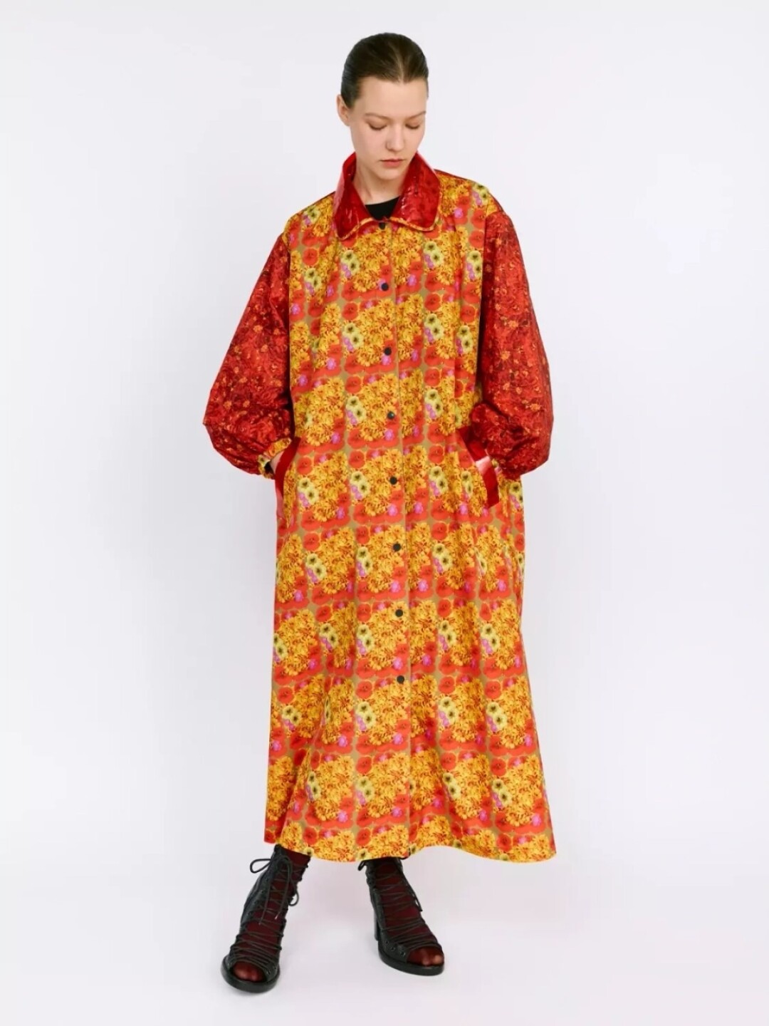 Повторяем стайлинг-трюк с показа Miu Miu с шифоновой юбкой Ulyana Sergeenko и струящейся Eclata c алыми рододендронами — миксуем нарядный низ с granpacore-свитерами, аутдор-парками и ворквир-куртками. А архивную Prada (с герберами в языках пламени) сочетаем с пудровым жакетом Meowshka (комбо розового и красного — важный тренд года!). Разбавляем коллекцию черно-серой верхней одежды оранжевыми розами Dries Van Noten, бургунди-четырехлистниками J.Kim и разноцветными букетами Gapanovich.