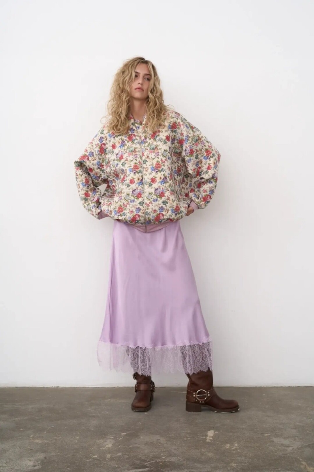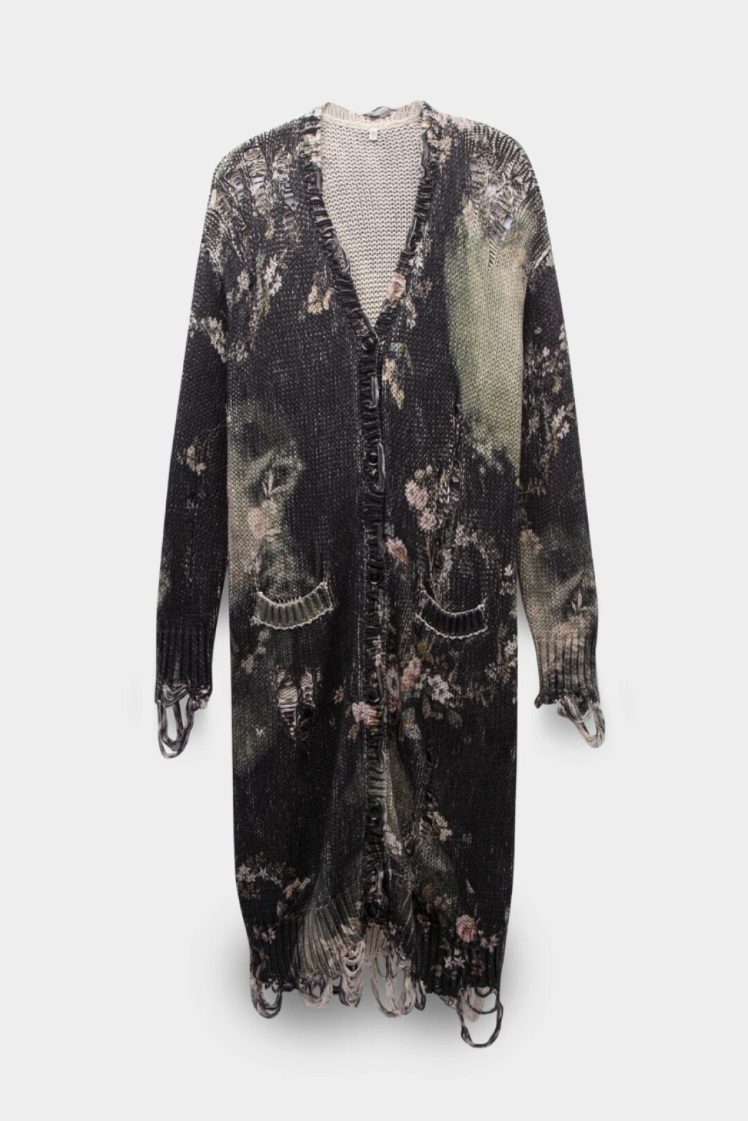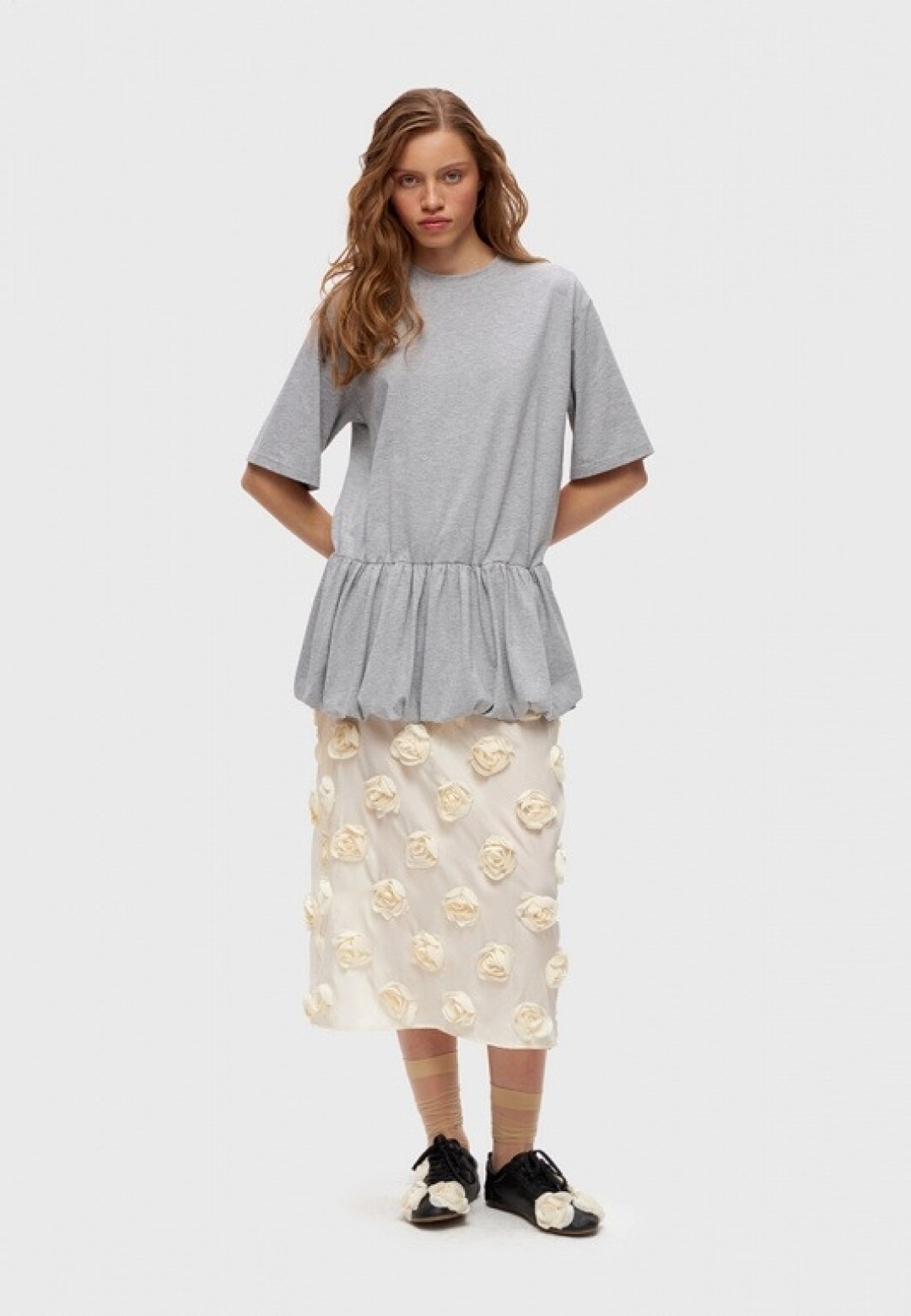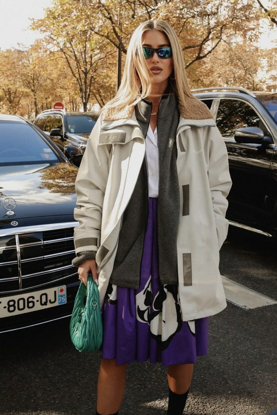 Повторяем стайлинг-трюк с показа Miu Miu с шифоновой юбкой Ulyana Sergeenko и струящейся Eclata c алыми рододендронами — миксуем нарядный низ с granpacore-свитерами, аутдор-парками и ворквир-куртками. А архивную Prada (с герберами в языках пламени) сочетаем с пудровым жакетом Meowshka (комбо розового и красного — важный тренд года!). Разбавляем коллекцию черно-серой верхней одежды оранжевыми розами Dries Van Noten, бургунди-четырехлистниками J.Kim и разноцветными букетами Gapanovich.