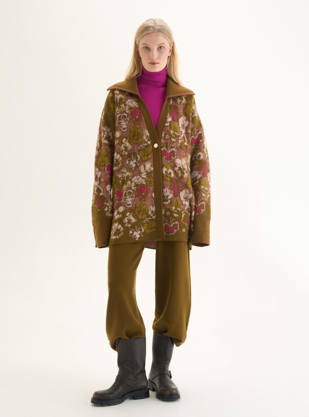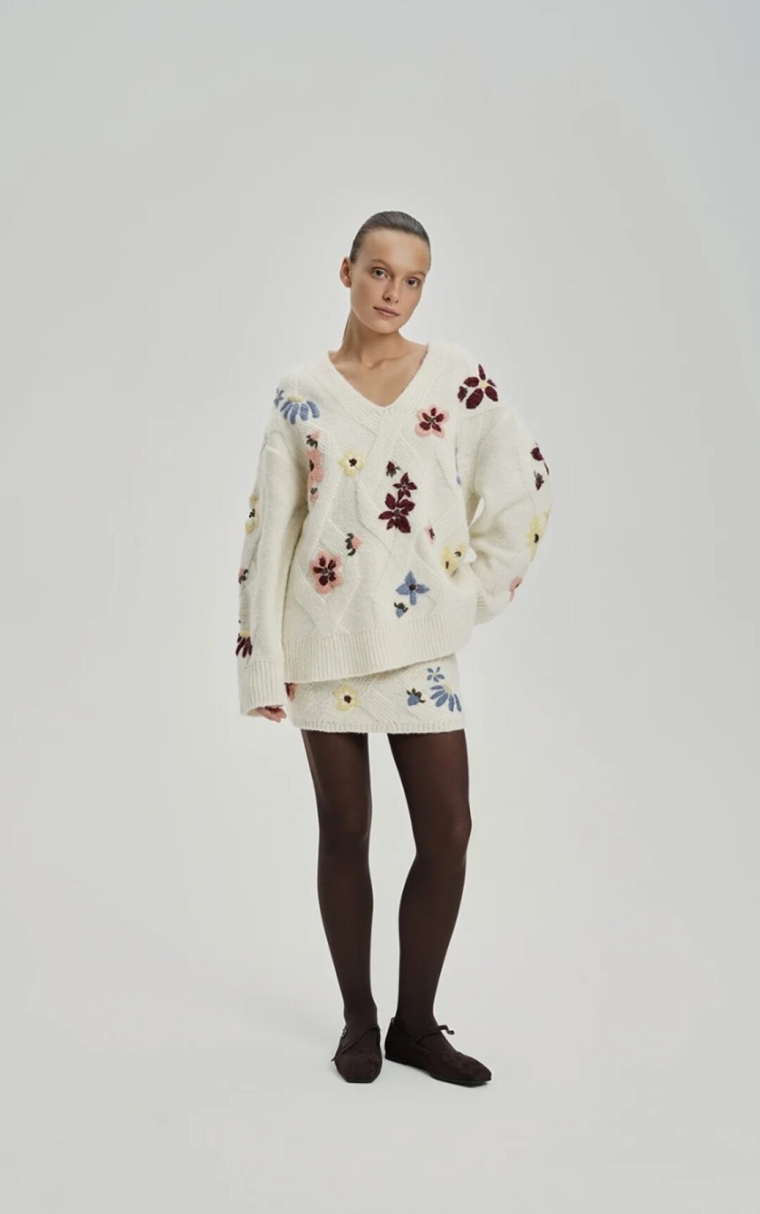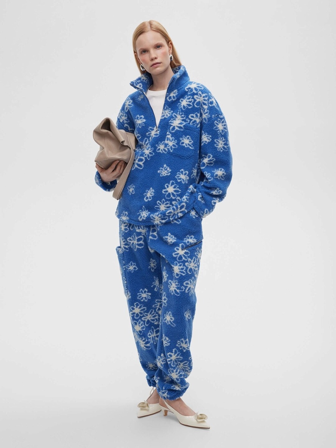 Утепляемся с цветочным трикотажем AND The Brand (связали целую коллекцию кардиганов с бутонами всех мастей), 1811 (наш выбор — floral сет из мини-юбки и джемпера), Mirstores (вы примете эти розы?) и Vereja (свитера с кидкор-флорой). Отрабатываем сразу несколько трендов за раз с кобальтовой двойкой из флиса Aim Clo и коллекционным лотом — пальто с пушистой отделкой Prada.