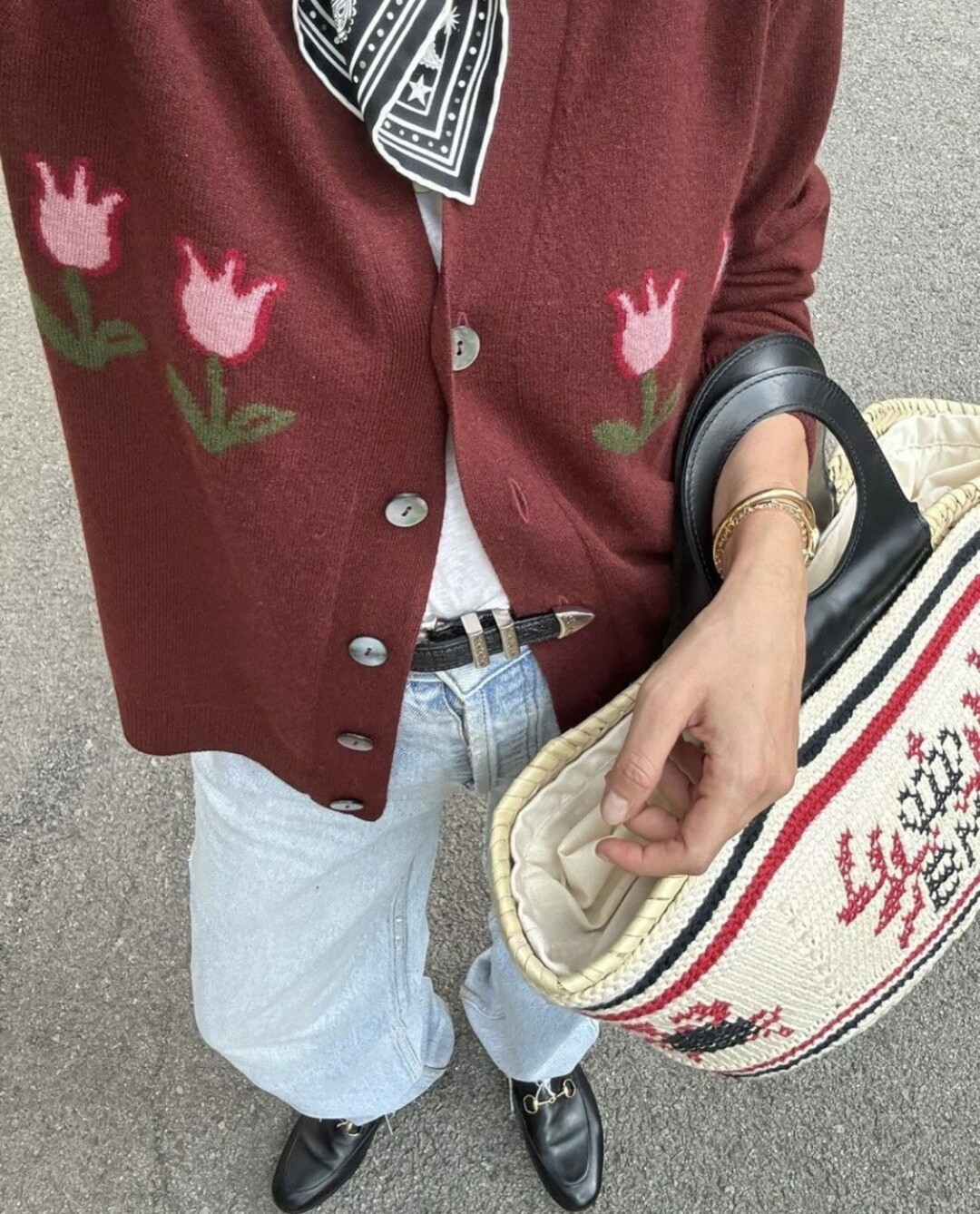Только начинающим практиковать скилл по сочетанию принтов советуем присмотреться к цветочным аксессуарам: веселой балаклаве с лепестками Keke или ретроварежкам Akhmadullina Dreams (Снегурочка-кор!). А платок с букетиками Annuko и атласный клатч Ushatava пригодятся на выставке «Бриллианты не навсегда» в Joy Gallery, посвященной воспоминаниям о лете.