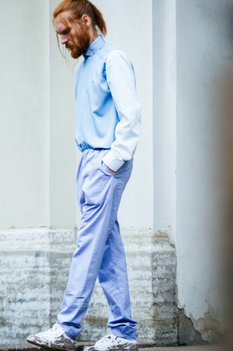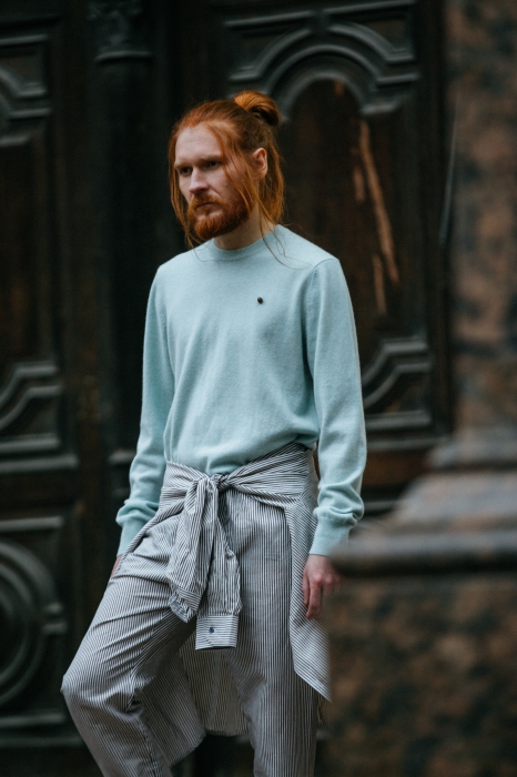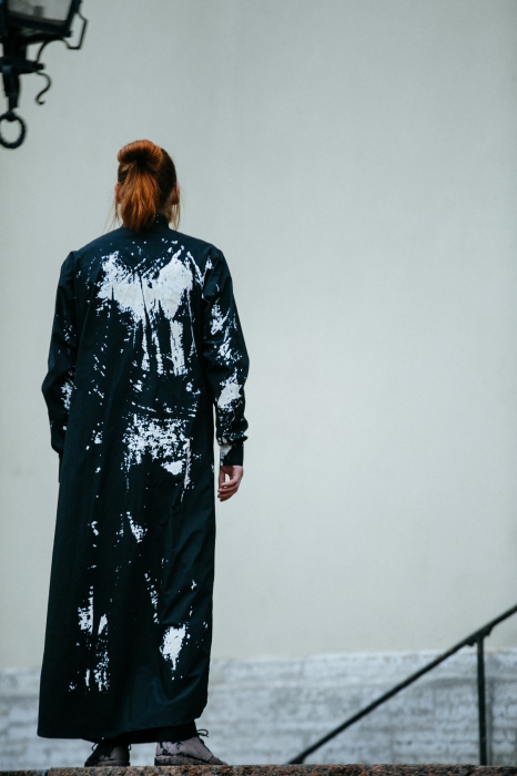 Лаконичная мужская коллекция молодого дизайнера Артема Шумова, показанная на Aurora Fashion Week, включает в себя базовый городской гардероб: сюда органично вписались плащи-халаты, широкие шорты на манер боксерских и пальто со следами от краски. Треники и свитшоты Шумов перевел в ранг вечерних, снабдив их жемчугом. Маст-хэв коллекции — кашемировые двусторонние плащи — подойдет как мужчинам, так и девушкам.