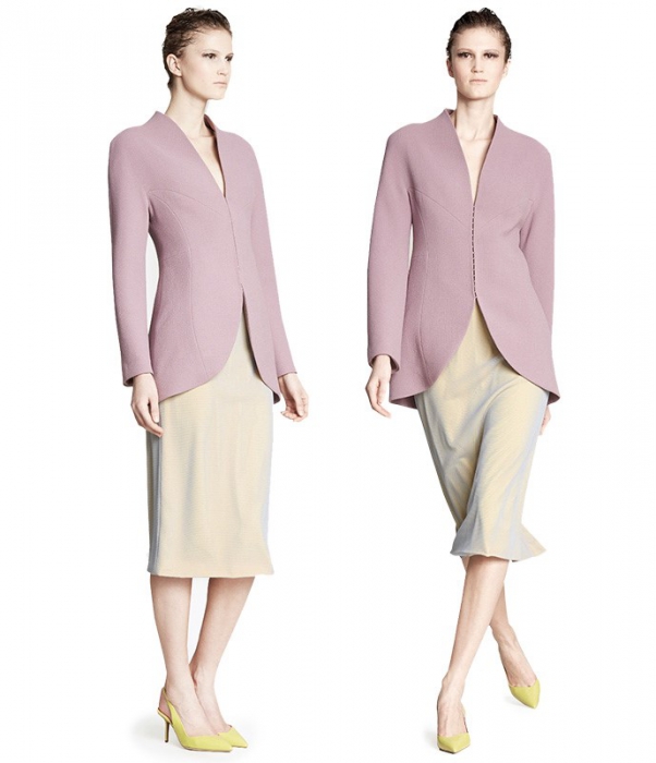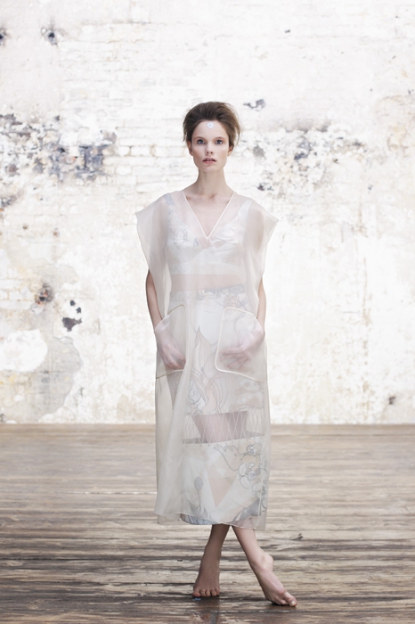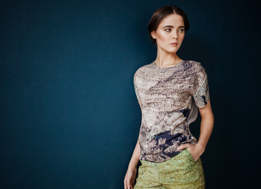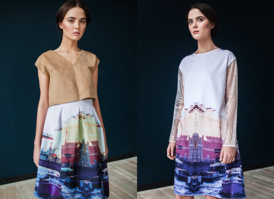 В коллекции весна-лето 2015 финалист нашего конкурса «Новые имена в дизайне 2013» Наталья Лескова использовала не только традиционные для марки фотопринты с классической архитектурой Петербурга, но и абстрактный орнамент из волн Финского залива. Коньком вещей Natali Leskova считается то, как сложный ритм рисунка тканей может оттенять базовые предметы гардероба — в наступающем сезоне ими станут песочный топ из мягкой замши, двубортное пальто и бланковые сорочки из шифона.