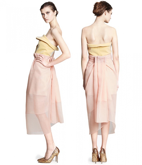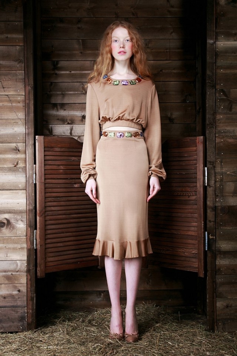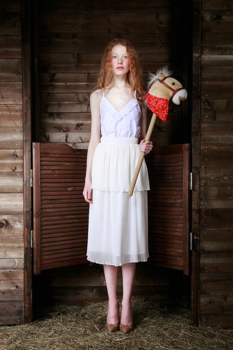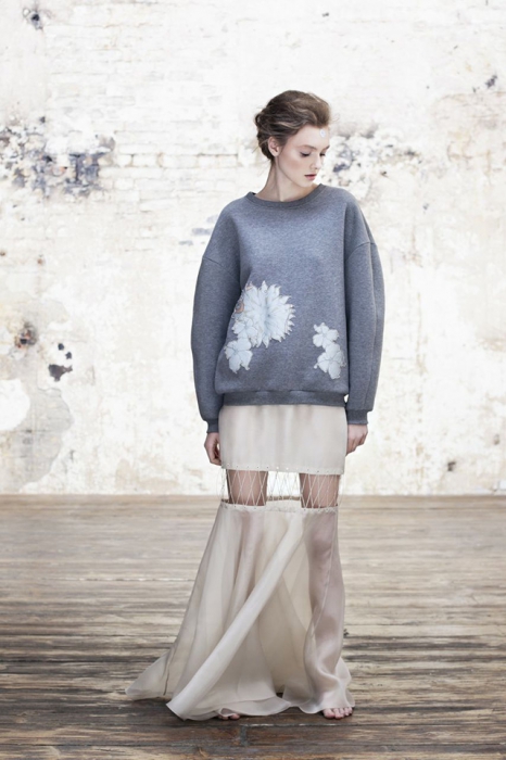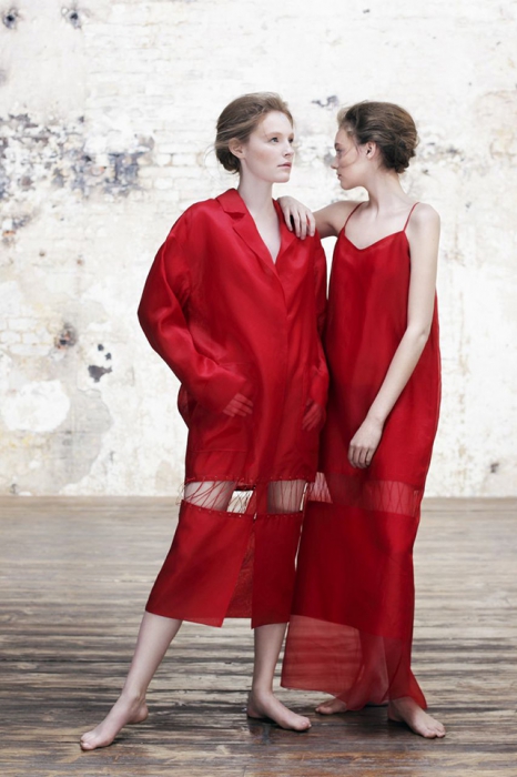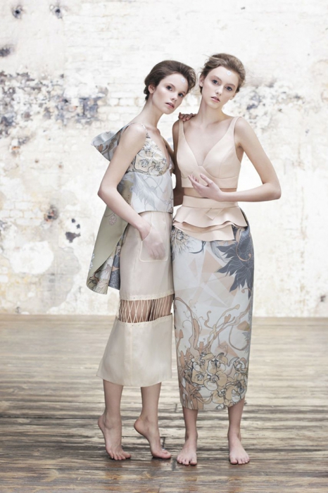 Сестры Алиса и Юлия Рубан, которым по праву принадлежит статус московских it-girls, продолжают гнуть свою линию и делать женственные, но человечные и носибельные вещи. Благодаря основным цветам (бежевому, жемчужному и серому) платья, которые на первый взгляд кажутся вечерними, годятся и для повседневной носки летом. Вместе с тем есть и откровенно нарядные вещи — юбка, поделенная пополам шнуровкой или топы с объемными оборками на спине.
