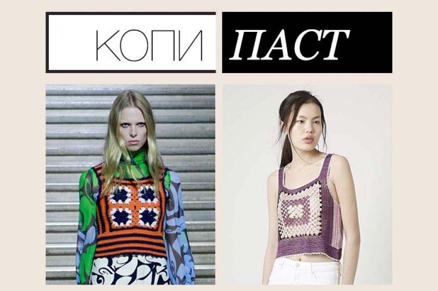 В круизной коллекции Миуччи Прады цитируются поздние шестидесятые и ранние семидесятые годы. И так же, как и у Saint Laurent, центральное место в мудборде занимает лето 1967 года, когда в квартале Хайт-Эшбери (Сан-Франциско) собралось около ста тысяч хиппи, знакомых и незнакомых, ознаменовав собой начало Лета любви. Классический аутфит хиппи — джинсы-клеш, сумки с бахромой, и топы, сплетенные в технике макраме. Кашемировые аналоги последних появились в коллекции Miu Miu, а вслед за подиум и на полках Topshop. Копия отличается от оригинала составом — шерсть дизайнеры масс-маркета заменили люрексом — остромодным материалом сезона, который напоминает о 1970-х, 1980-х и 2000-х одновременно.