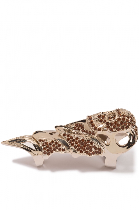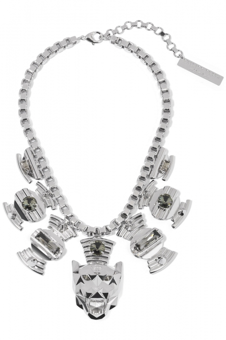 Среди аксессуаров: кожаные рюкзаки, инкрустированные заклепками и шипами, ремни, сумки, перчатки, кошельки и небольшие сумкочки-клатчи, декорированные новым символом коллекции – трехмерным образом бриллиантовой пантеры.
