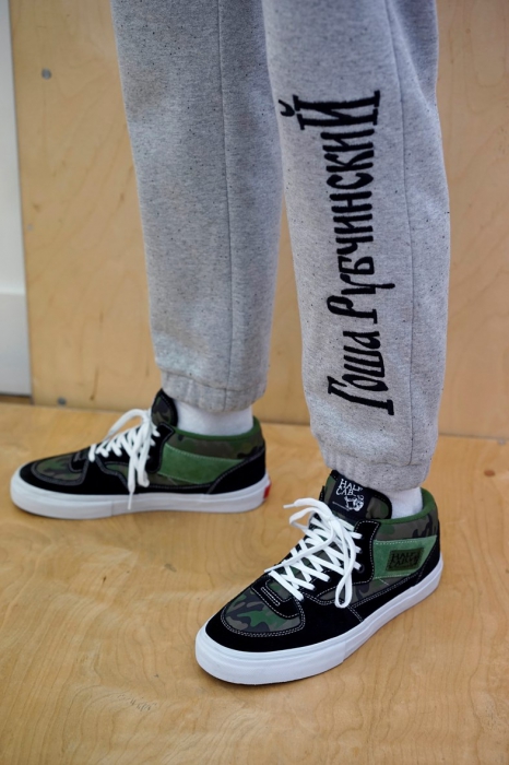 Гоша Рубчинский представил лукбук, который снял 15-летний фотограф Том Эммерсон. Напомним, осенне-зимнюю коллекцию дизайнер посвятил ленинградскому клубу Tamtam 1990-х — месту встречи богемы, фриков, первых скинхедов и панков. Дресс-код клуба на Васильевском острове пересказан подтяжками с кириллицей, военными кителями из 1960-х, которые носили все сотрудники «Тамтама», треники, панкушные джинсы и рубашки в клетку. Кроме них, дизайнер презентовал кроссовки и кеды из двух коллабораций — с Vans и Reebok.
