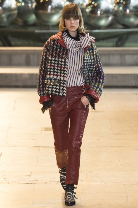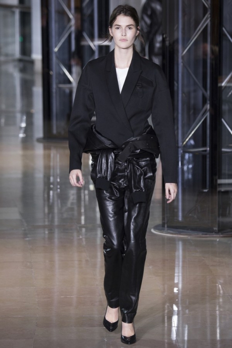 Вкупе с классическим жакетом кожаные штаны способны трансформировать офисный стиль в рамках деловой этики (если вы, конечно, откажетесь от ушанки, как на шоу Louis Vuitton). У обыкновенных костюмных брюк кожаные выигрывают еще и тем, что не мнутся.