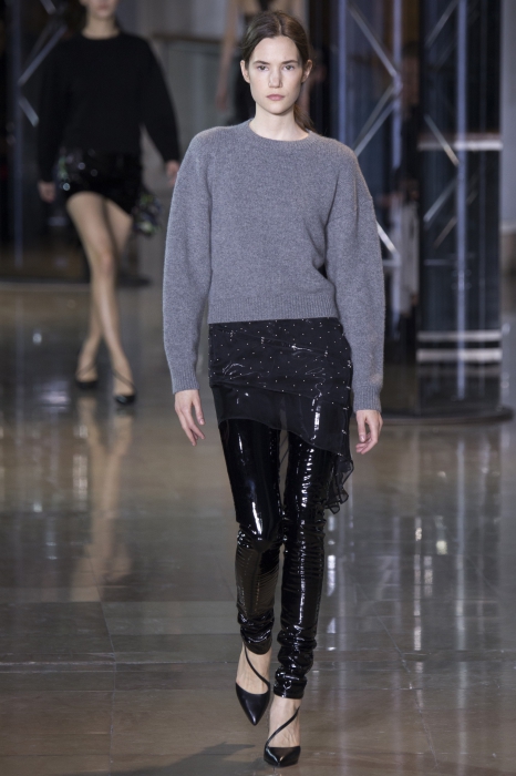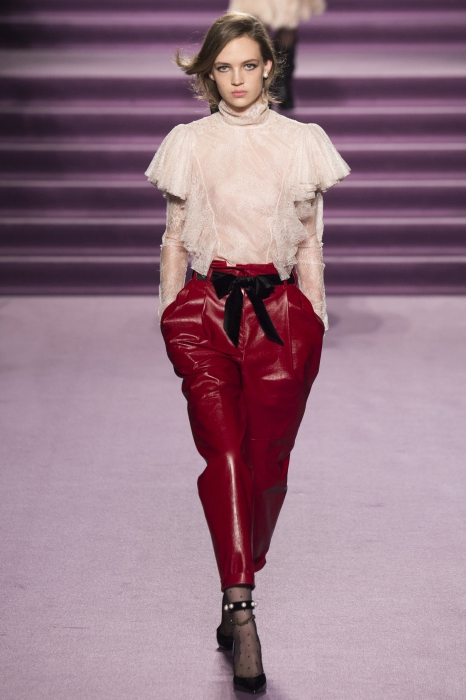 Самое очевидное сочетание этого сезона: следуем правилу баланса и надеваем грубый низ с ультраженственным верхом. Подойдут блузы с рюшами, как у Philosophy di Lorenzo Serafini, топы с бантами, как у Isabel Marant, или совсем прозрачные майки, как на показе Barbara Bui. И никакой спортивной обуви: лучше выбрать ботильоны на небольшом каблуке, остроносые туфли или «казаки».