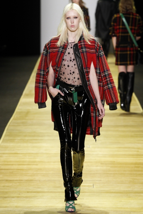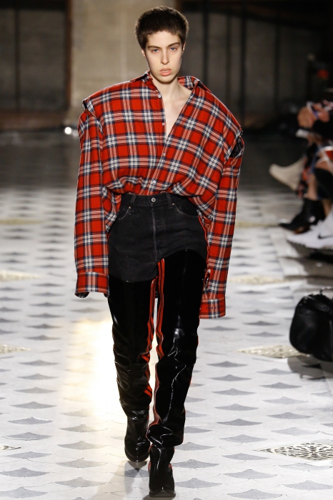 Сочетание красной фланелевой рубашки и кожаных штанов, излюбленное Джо Страммером и Малькольмом Маклареном, мы нашли сразу в трех коллекциях — у Vetements, Off/White и Barbara Bui. От сходства с панками из семидесятых годов спасут детали: под рубашку, например, можно надеть футболку (парням) или прозрачный топ (девушкам).