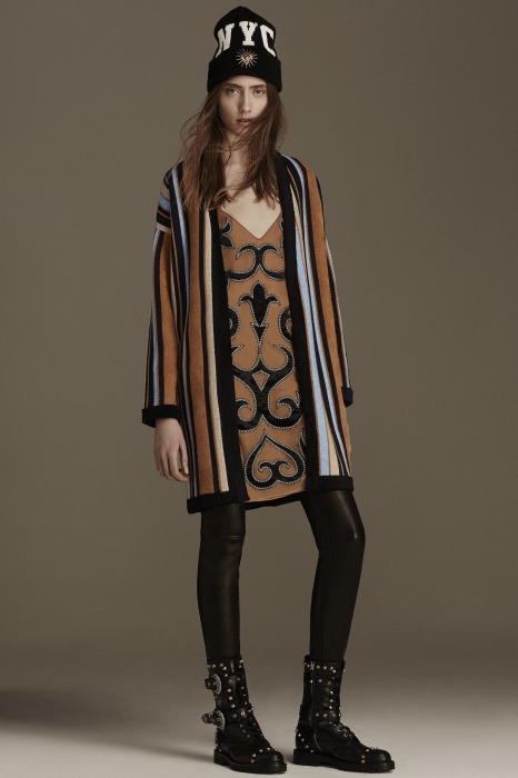 Три года назад мы добавляли кожаные легинсы в стоп- и лол-листы, но мода сделала новый виток, и штаны снова оказались в трендбуке. Чтобы вещь попала в нужное десятилетие и не напоминала о дискотеках двухтысячных или ковбоях, стилизуйте ее, как в лукбуке Fausto Puglisi — по принципу «капусты» с платьем, кардиганом и шапкой-бини.