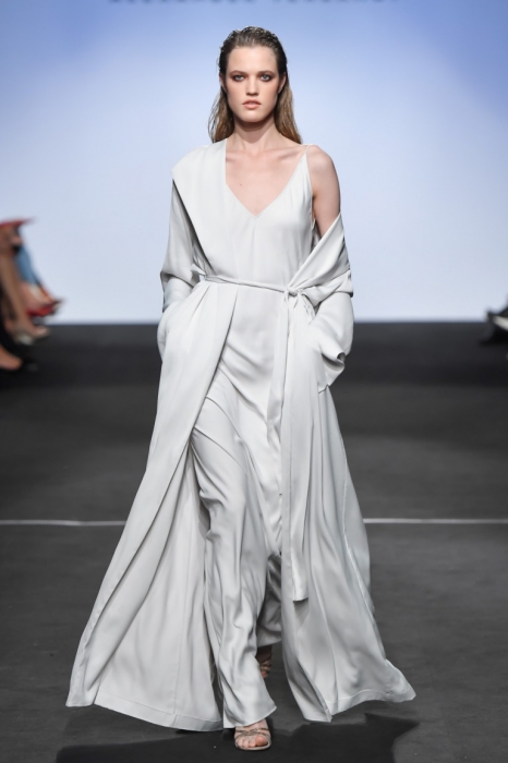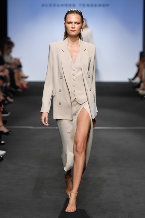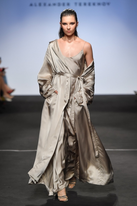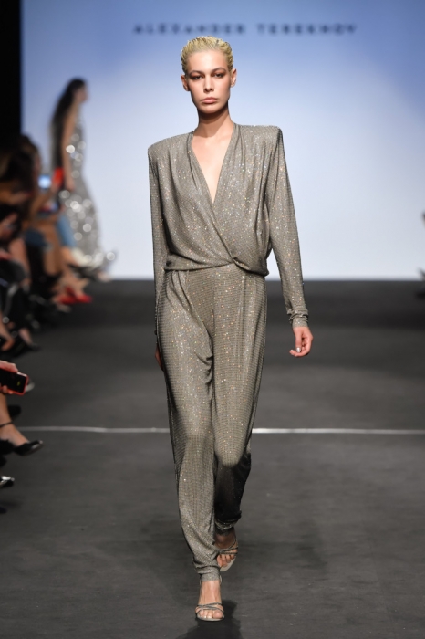 Любимый российский дизайнер Ксении Собчак, Матильды Шнуровой, Оксаны Лаврентьевой, Светланы Бондарчук и Полины КиценкоАлександр Терехов — показал в Москве новую коллекцию. В ней он объединил все тенденции будущего сезона — минимализм, металлик, милитари, оверсайз и глиттер, который переливался на платьях-комбинациях и комбинезонах с маскулинными плечами. В них мы уже видели в Instagram негласного амбассадора марки — Елену Перминову — модель выгуливала «кристальные наряды» Терехова на Неделе моды в Париже. Мужские вещи — например, армейские штаны и бомбер — ранее примерил Сергей Шнуров, сопроводив аутфит традиционным матерным стихом.
