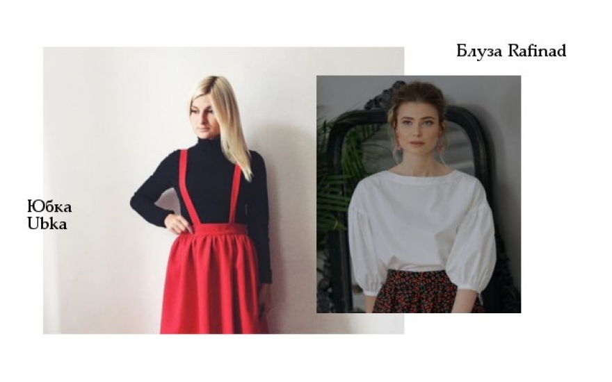 Еще мы нашли для тебя вот такую замечательную юбку на бретелях от Ubka . Ее можно надеть с водолазкой, свитером, рубашкой — с чем пожелаешь. Мы желаем сочетать с воздушной блузой от Rafinad. Зефирно получается.