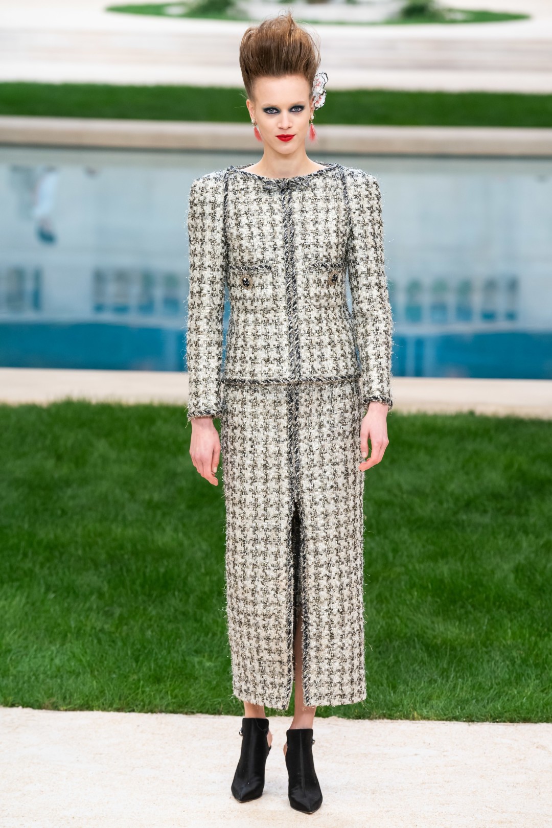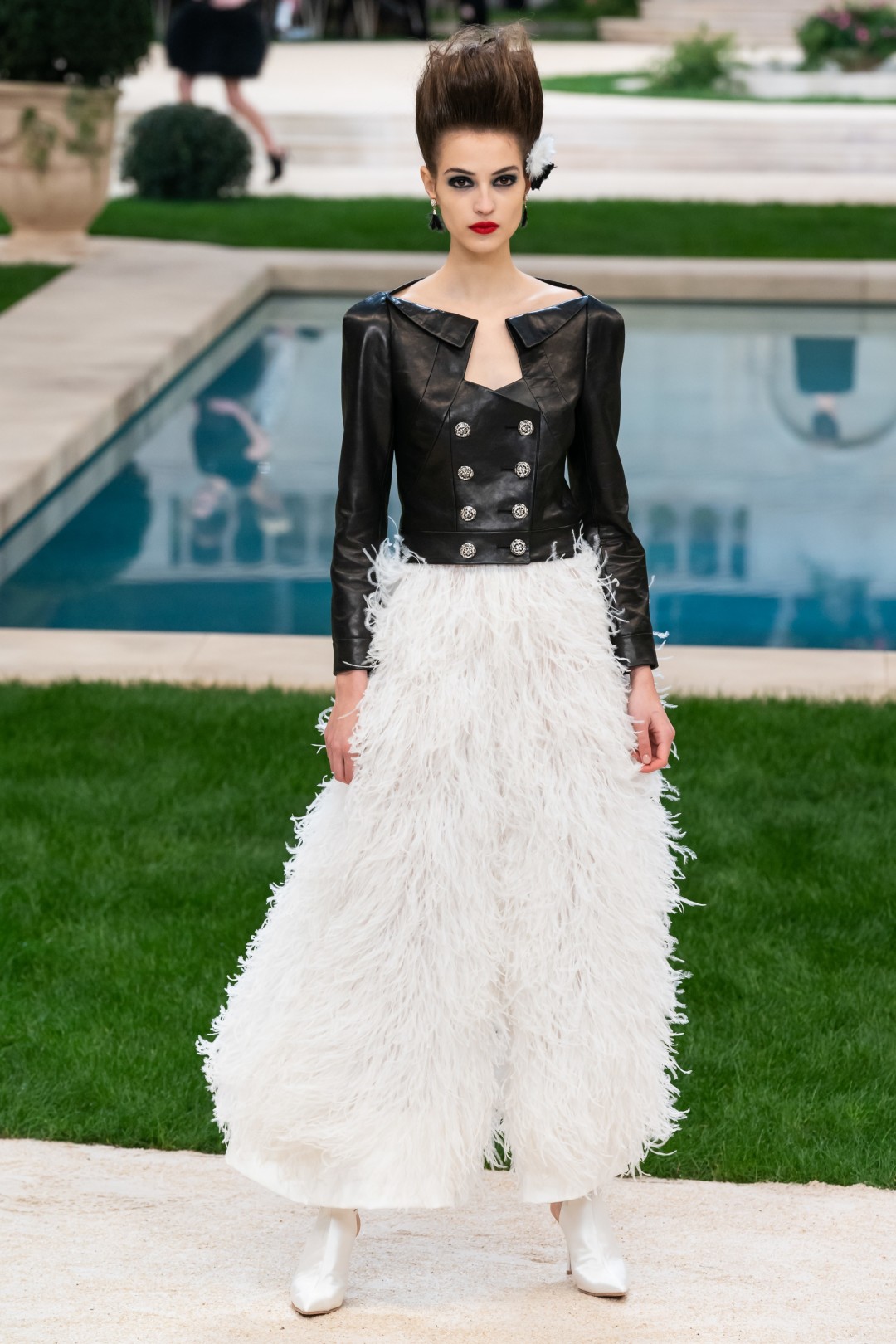 На девушках — традиционные твидовые костюмы, жакеты из разноцветных перьев, плиссированные юбки с заниженной талией, коктейльные платья с объемными рукавами, кожаные куртки, которые носятся на голое тело, и монохромные наряды в пол, которые мы уже видим на Пенелопе Крус, Марго Робби, Кире Найтли, Ванессе Паради и на других амбассадорах Chanel на «Оскаре» через месяц.