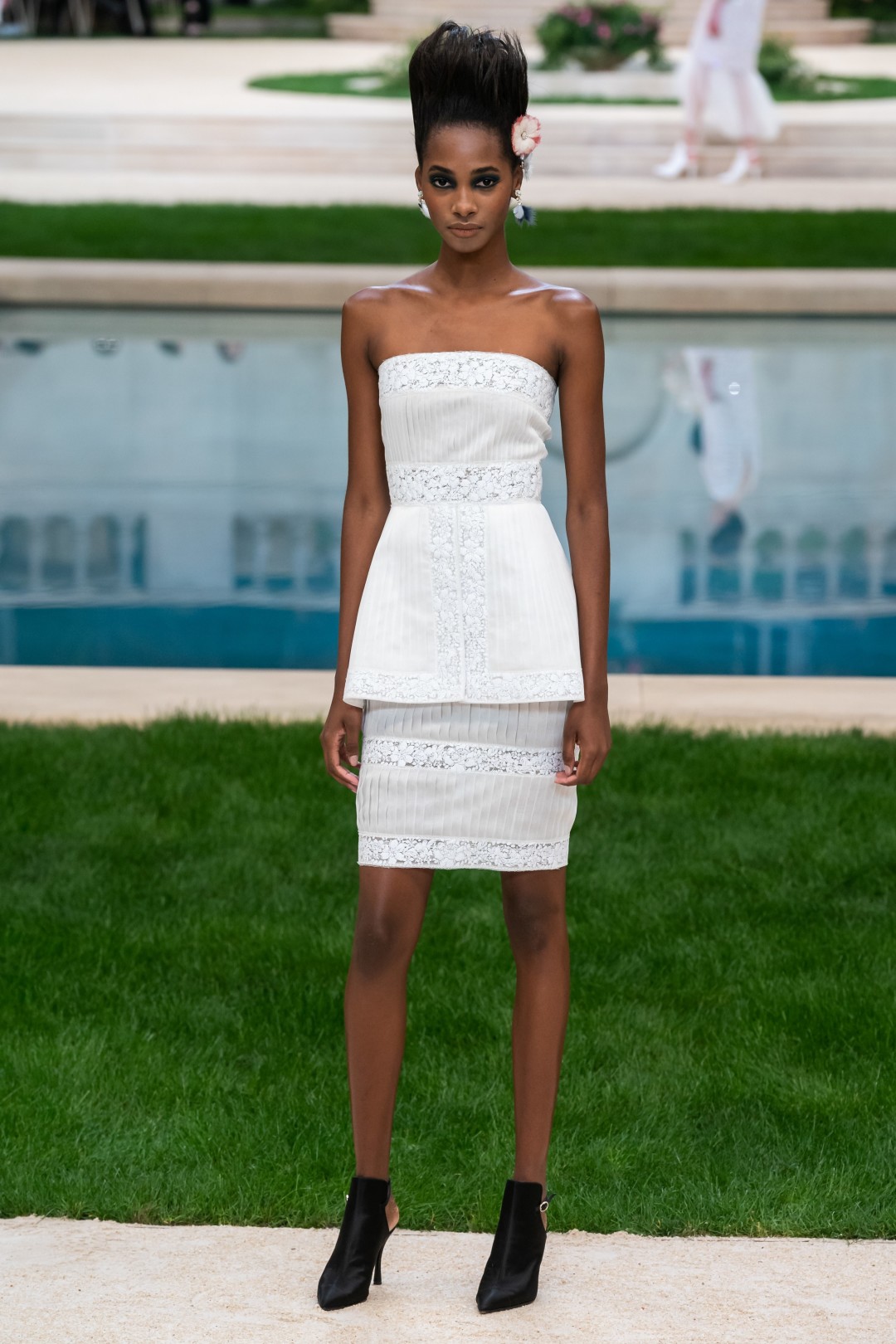 Пока Петербург утопает в сугробах и переживает суровый двадцатиградусный мороз, Париж нежится у гигантского бассейна, разбитого в Гран-Пале для кутюрного показа Chanel. Вместо лежаков — аккуратные, будто фарфоровые, стулья, на которых разместились Марина Вакт, Каролин де Мэгре, Тильда Суинтон, София Коппола и другие гостьи фронт-роу, а вместо книги — калейдоскоп из красивых моделей, в том числе Алины Болотиной, Юлии Павловой и Крис Грикайте.