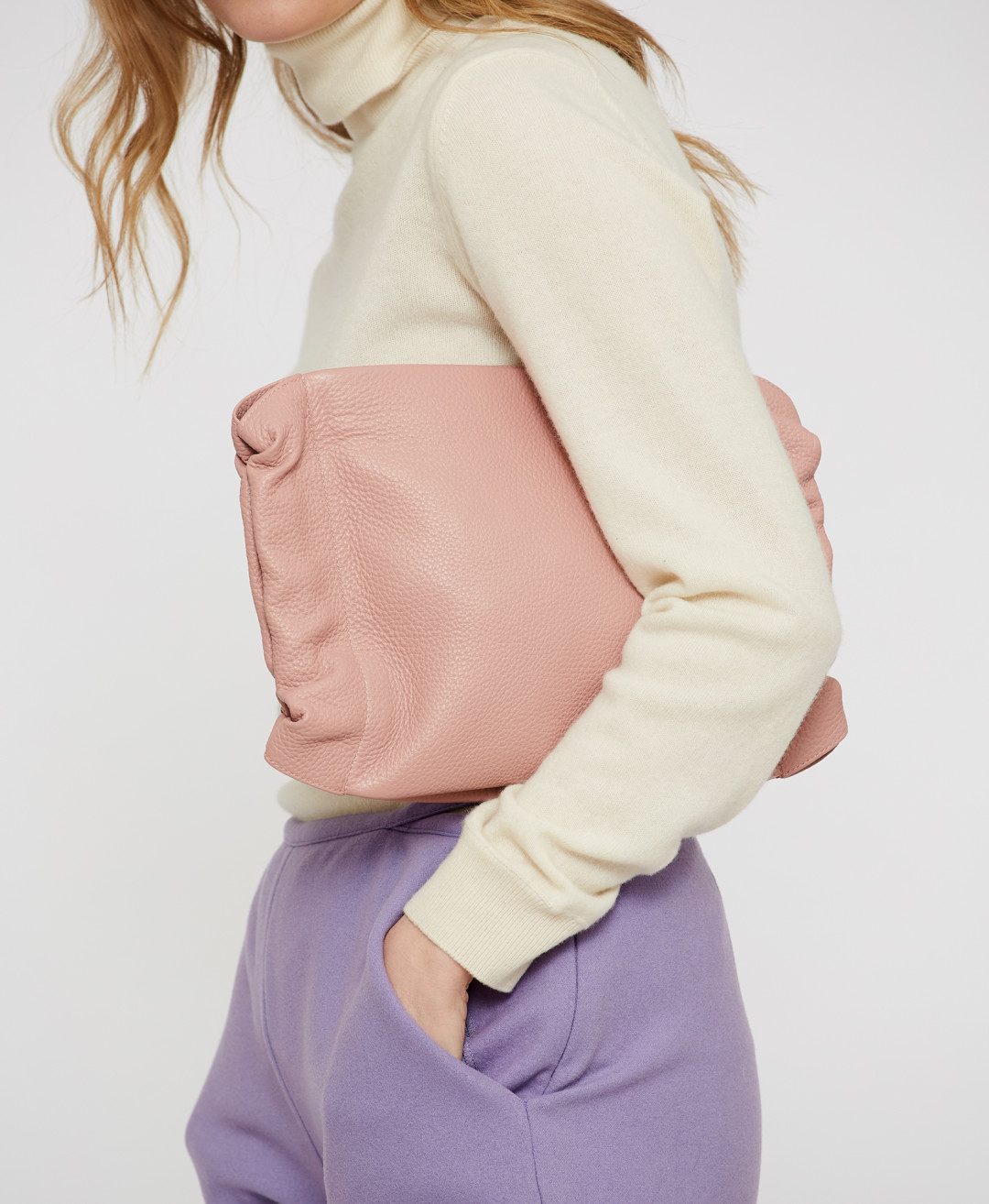 Здесь и модная сумка-седло, и популярный в Instagram клатч-подушка, и мини-сумка для телефона. Добавим еще универсальные модели на каждый день – рюкзак и вместительная сумка на широком ремне модного в следующем сезоне цвета – темно-синего.