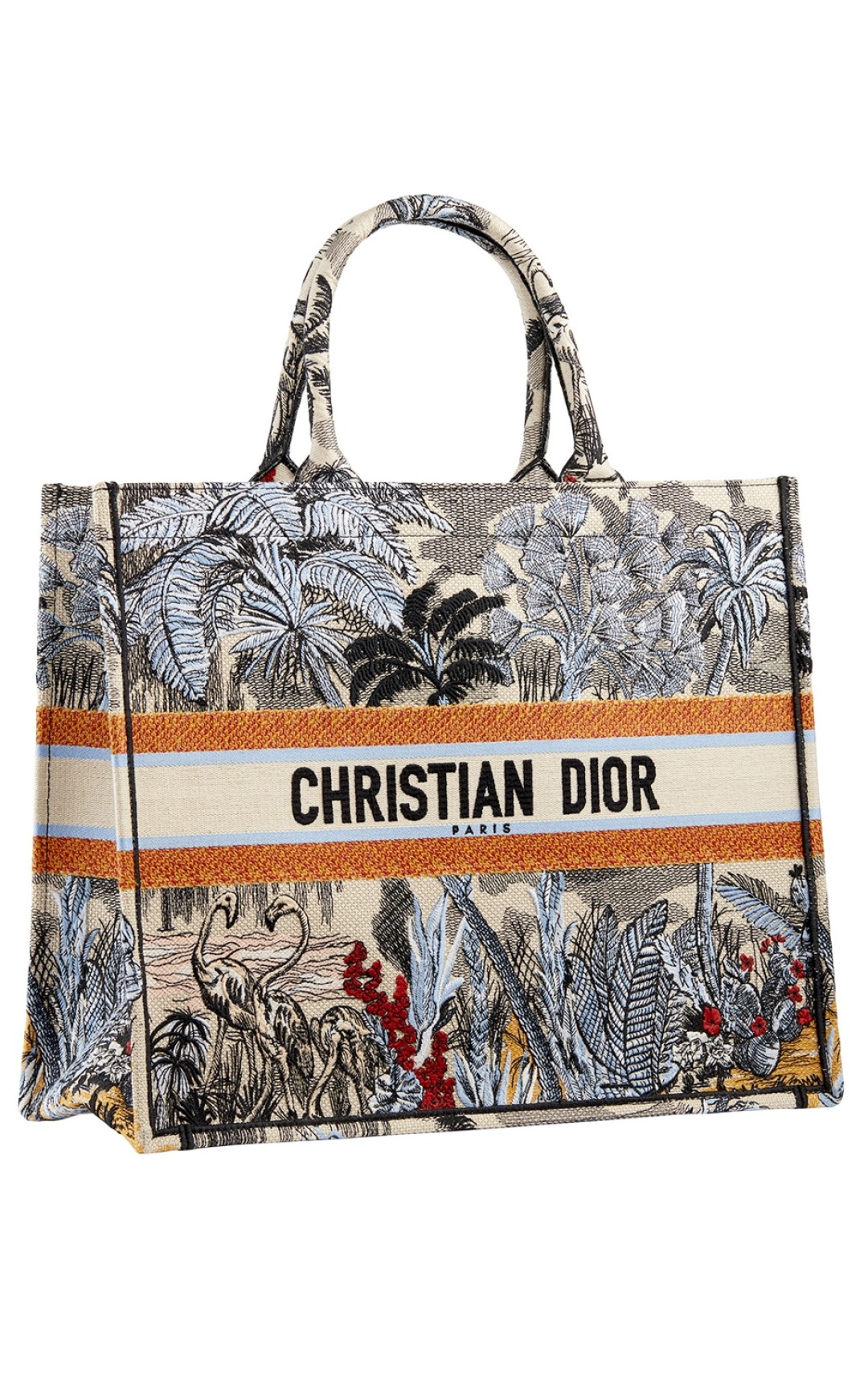 Почему Dior Book Tote — шопер мечты? Его вручную собирают мастера модного дома, предварительно выткав на плотной канве буйные тропики, фламинго, тигров и прочую экзотику. Это наш официальный осенний антидепрессант! (Dior)