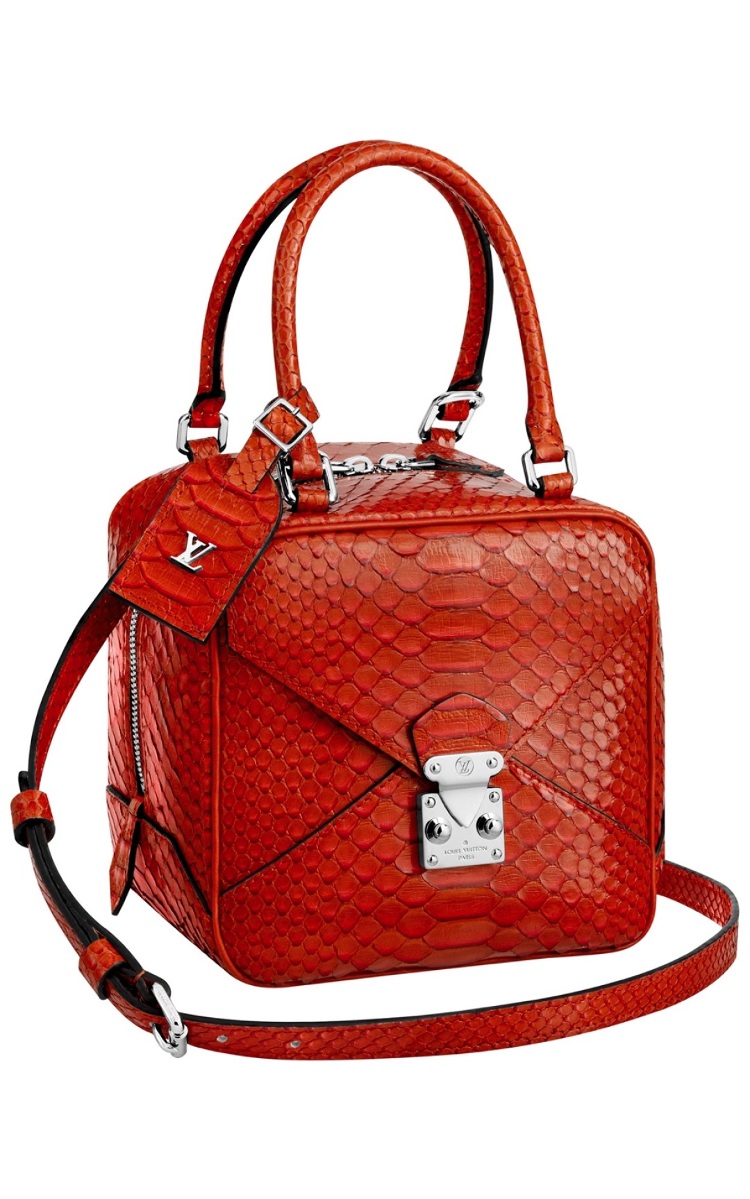 Встречайте: мода в кубе! Николя Жескьеру показалось недостаточно идеальной формы, и он подарил сумке Neo Square от Louis Vuitton уникальную фактуру: коралловую кожу питона. (Louis Vuitton)