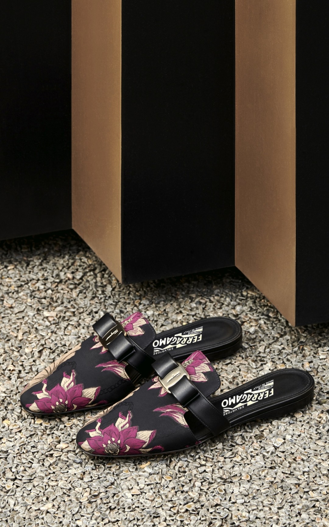 Легендарной модели Vara от Salvatore Ferragamo исполняется сорок лет! Туфельки на низком каблуке с аккуратным бантом придумала дочь Сальваторе Фьямма, и они стали самой продаваемой парой марки, которая к юбилею обзавелась не только новыми принтами, но и вариантом в виде мюлей. (Salvatore Ferragamo)