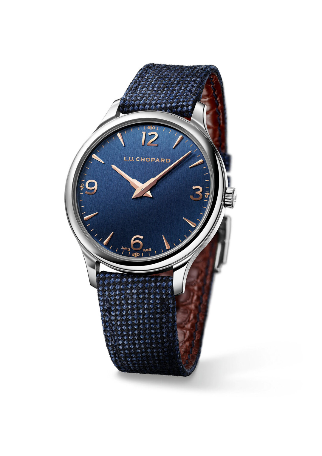 Двустрелочник Chopard L.U.C XP справедливо полагает, что для часов главное — показывать время и незаметно лежать на запястье. С первой задачей лучше всех справляются покрытые розовым золотом стрелки на минималистичном циферблате. Со второй — ультратонкий корпус и ремешок из натуральной мериносовой шерсти на подшитой вручную подкладке из кожи аллигатора.