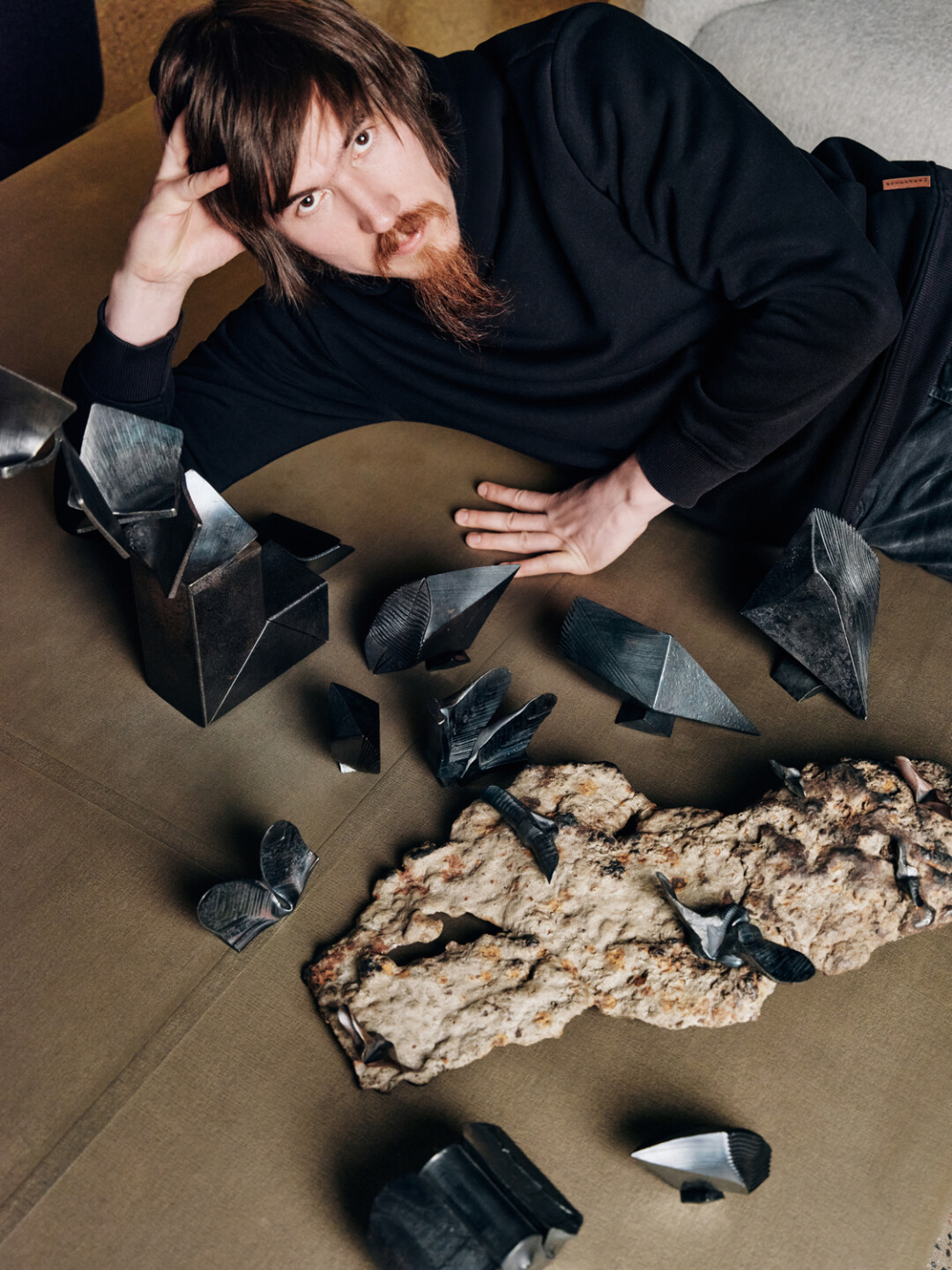 Минималистичная серия «Биолиты» выполнена из стали в технике ковки и воронения.