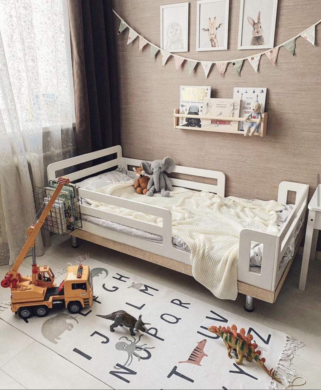 Мебель из массива ценных пород дерева (дуб, бук) и других экологичных материалов. Все для счастливого спокойного сна: кроватки в виде домиков, двухъярусные кровати, кровати с горкой, а также постельное белье, на котором будут сниться добрые сны про лесных обитателей. Плюс шкафы, столы, полки, аксессуары для хранения.