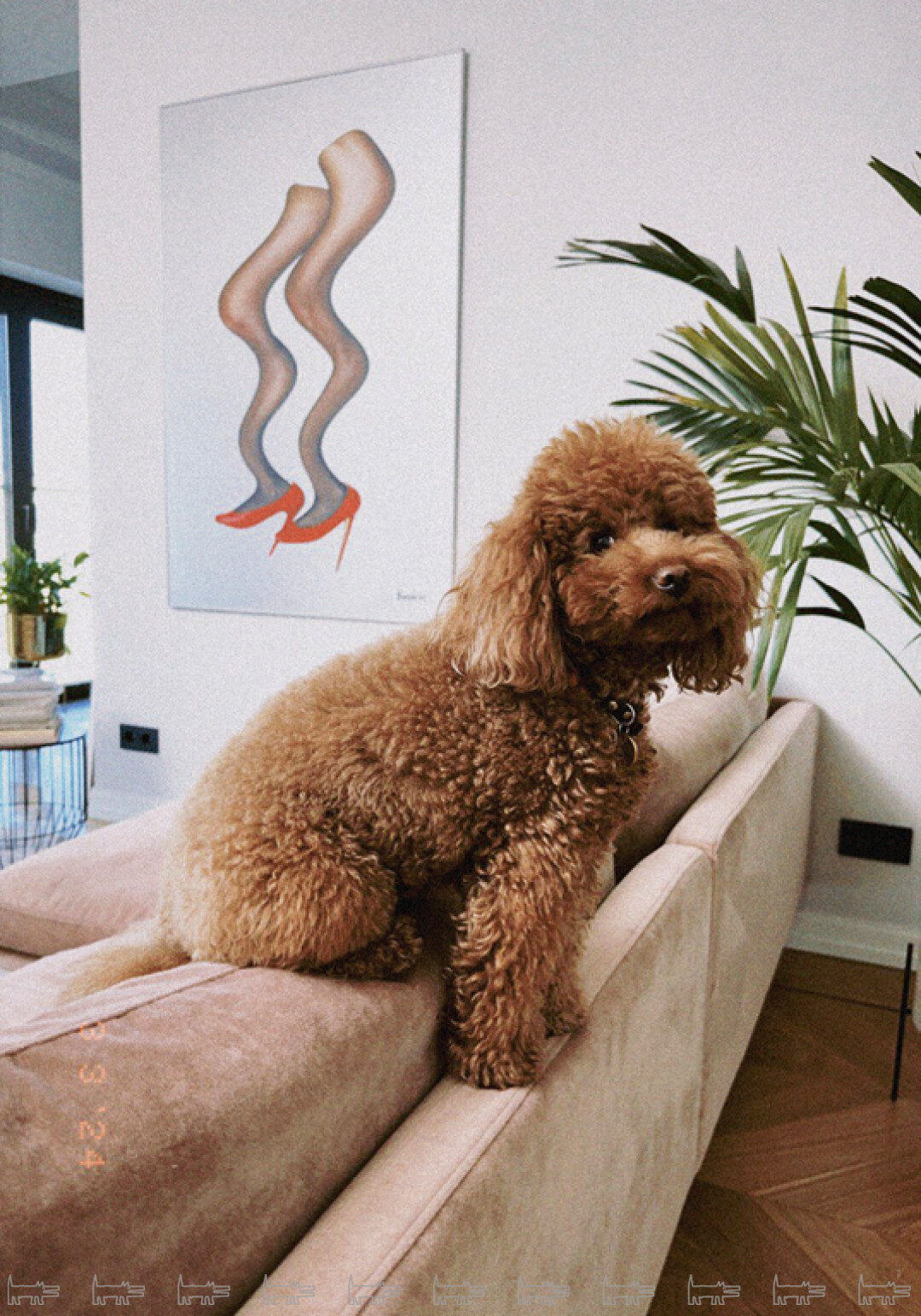 Как минимум на 10 лет, между прочим. Потом мои студенты из Rogov School (у меня же была офлайн-школа стилистов, тоже одна из первых, если подумать!) подарили мне еще одну абстракцию Бондарева — она висит в постирочной! Я понял, что работы Сережи отлично мэтчатся с моим домом, и начал в них потихоньку инвестировать. Вот портрет Брижит Бардо стоит на мольберте. Вот портрет супермодели Алек Уэк — называется «Примерка».