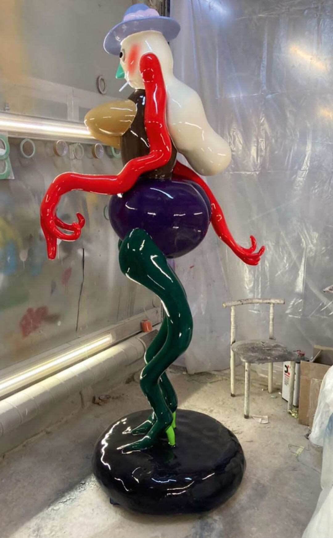Неудивительно — я коллекционирую его работы! С Сережей я познакомился больше десяти лет назад именно в Петербурге — как с креатором, дизайнером одежды бренда Sonya Marmeladova и владельцем барбершопа «Букля». Мы подумали — а почему бы не заколлабиться? Тогда Бондарев нарисовал эскизы для моего бренда Alexandr Rogov, и мы сделали вышивку гладью: представь, такая кривая морда, неистовая улыбка, растянутые глаза в разные стороны, красные ноги — в общем, витальная яркая абстракция очень в духе Сережи. Это была одна из первых арт + фэшн-коллабораций в России, и мы суперуспешно продали эту маленькую капсулу. А первая работа Бондарева, которая у меня поселилась, — это «Танцующие ноги» на железном листе: друзья не знали, что мне подарить на день рождения, а в итоге угадали — «Танцующие ноги» переезжали со мной два раза, но только на Павелецкой я нашел для них достойное центральное место в экспозиции.