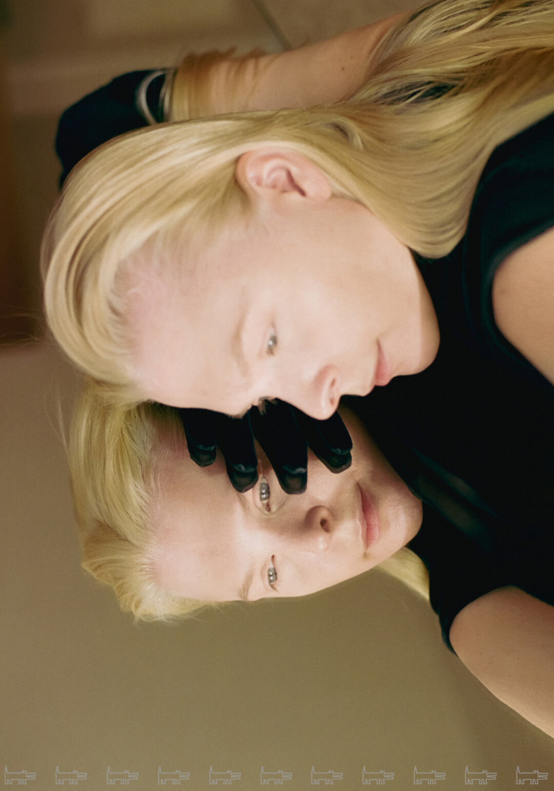 Дизайнер Юнона Незванкина отражается в зеркальной поверхности столика бренда Glas Italia – уникальных мастеров по работе со стеклом
