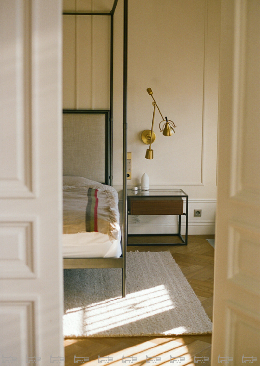 Юнона: Я хочу выразить благодарность нашим подрядчикам: они мегакоммуникабельные, готовы вписываться в любую авантюру, исправляют свои ошибки, если что-то не так, всегда по максимуму вкладываются, чтобы в итоге все получилось. Я, например, просто обожаю петербургское мебельное производство Vibe — они всё берут под свой контроль и вообще лучшие специалисты в городе по работе с металлом. Я делала с ними всю мебель для Predubezhdai и IRNBY, а для этой квартиры они сделали вариацию напольного зеркала-трюмо.