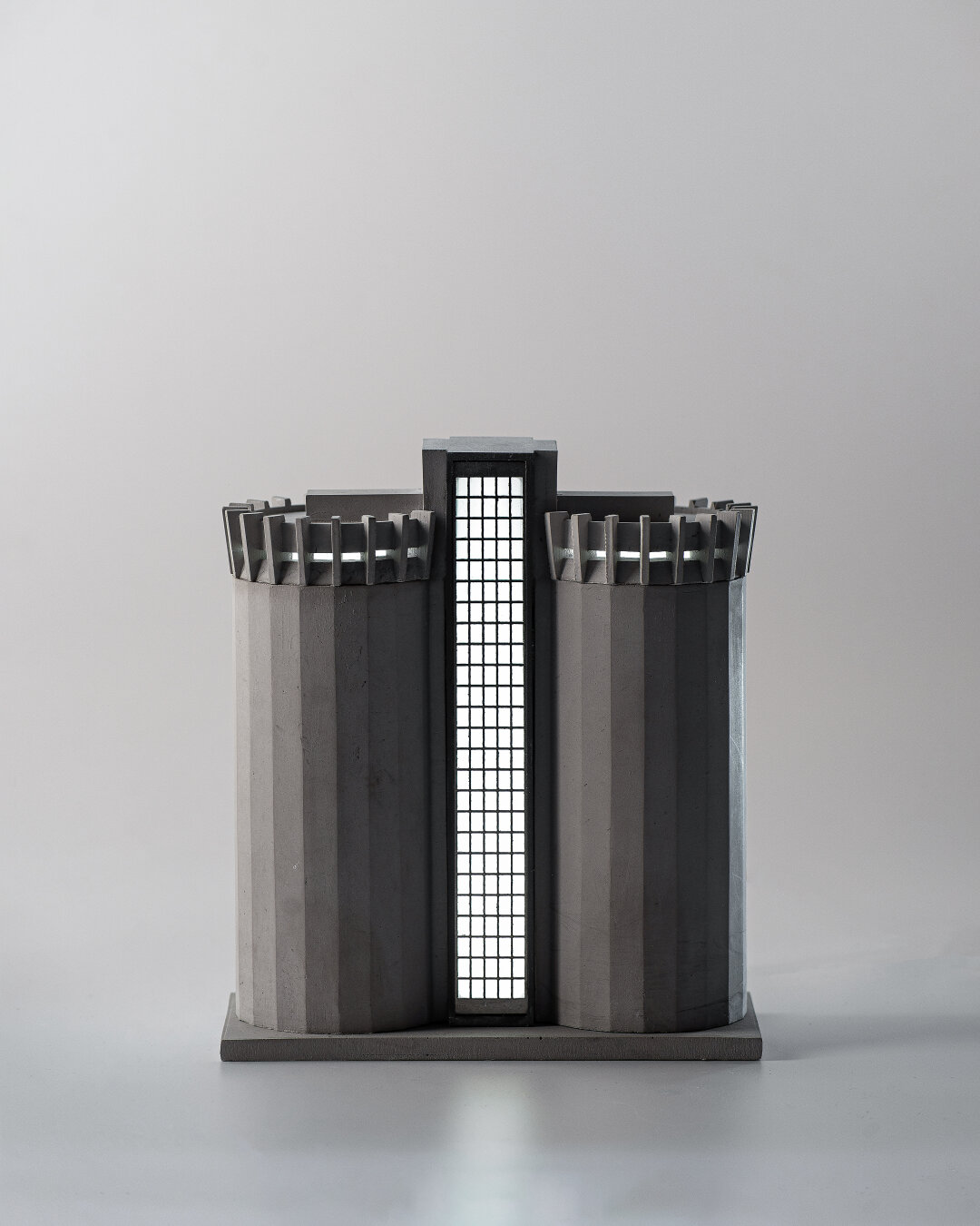 Более сложные бетонные светильники, например копия самарского элеватора, собираются как из бетонных деталей, так и из пластиковых. Мы добавляем туда и металлические элементы, вырезанные на лазерном станке, и конвейерные, которые покупаем готовыми.