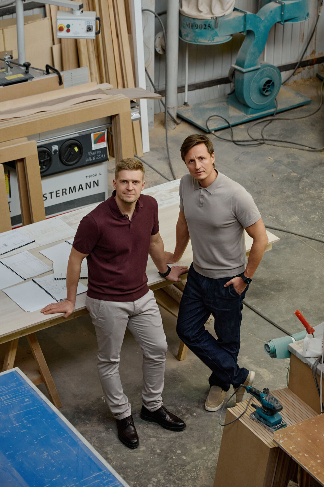 Михаил: Мы с Игорем знакомы очень давно: он занимался архитектурой, я – поставкой мебели, и мы часто пересекались по рабочим вопросам, но до плотного сотрудничества не доходило. И вот однажды коллега-производитель попросил меня сделать одну деталь, потому что у него нужного станка не было, а Игорь позвонил мне, чтобы эту деталь обсудить – оказалось, это он заказал ее для своего проекта. Мы встретились, поговорили и поняли, что у нас много общего. Включая желание начать собственное производство: он к тому времени тоже двигался в этом направлении. В общем, мы обсудили сложности и поняли, что вдвоем будет шагать проще и веселее. Тем более что у нас получилось разделить обязанности: Игорь взял на себя общение с клиентами, встречи, коммуникации и продажи, а я сосредоточился на вопросах производства.