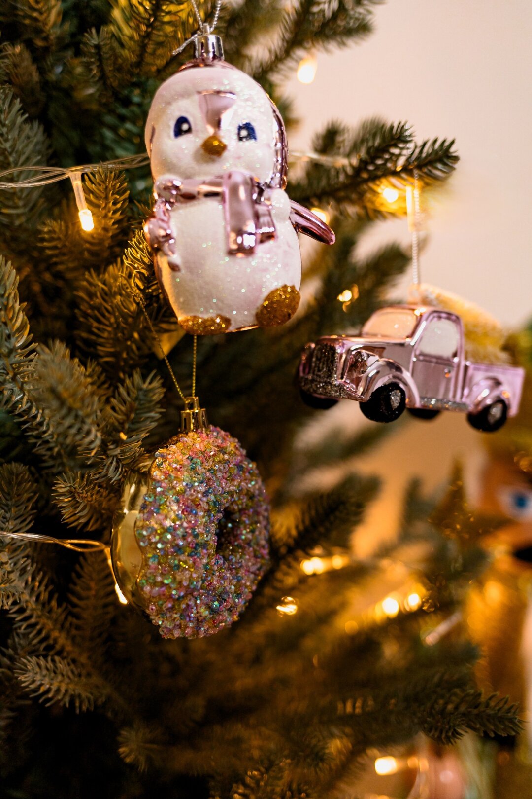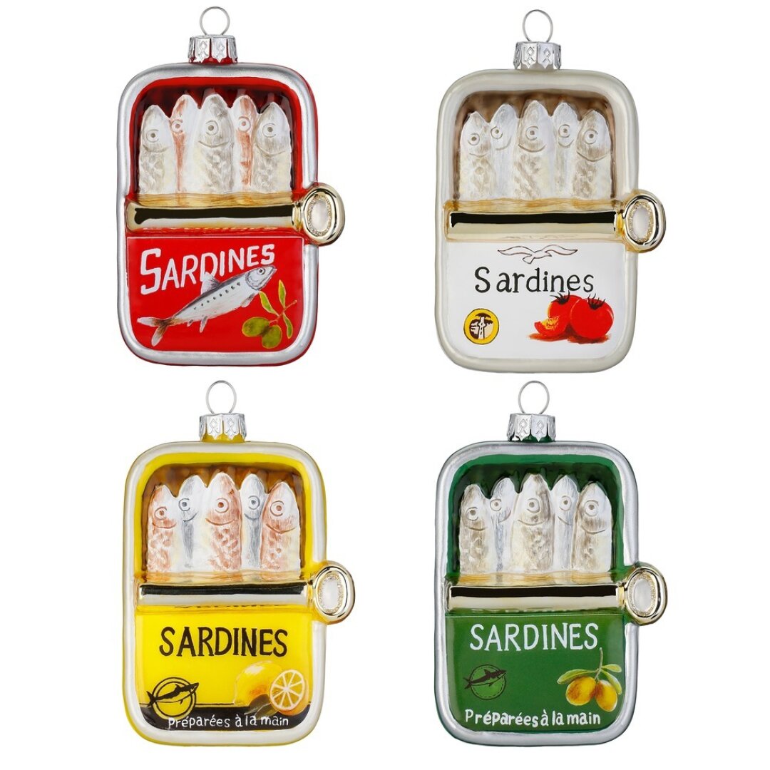 Первый образ – гастрофеерия: веселые пузырьки, баночки черной икры и мини-шпроты – наряд с роскошным флером. Вплетаем бархатные ленты, посыпаем золотыми искрами гирлянд, добавляем немного снежинок и – вуаля! – елка готова к зажигательным танцам.