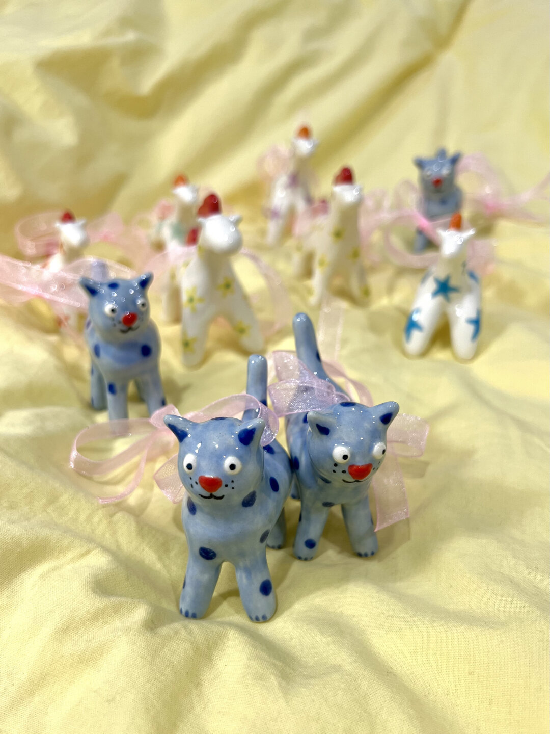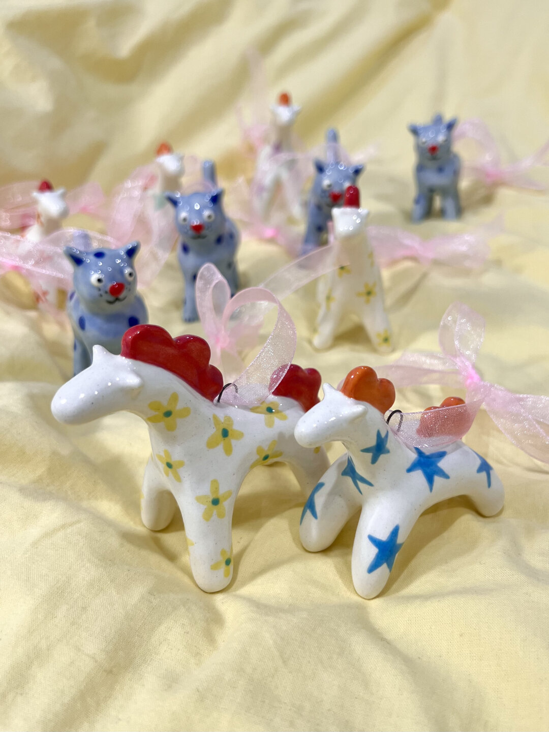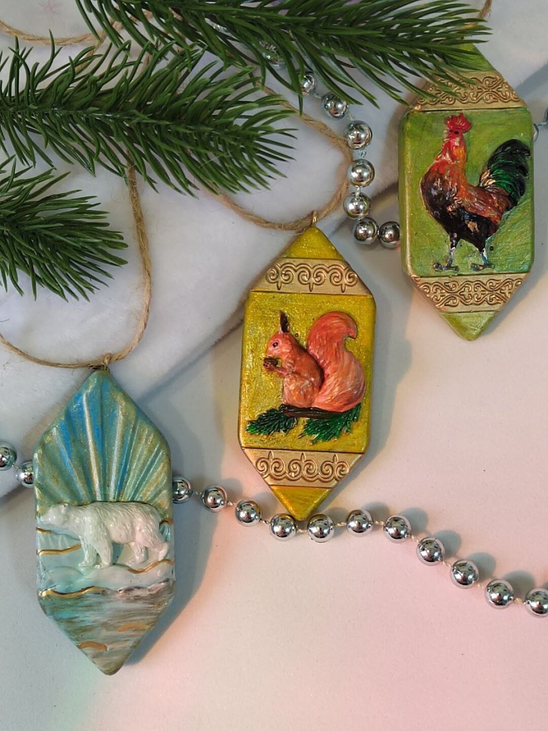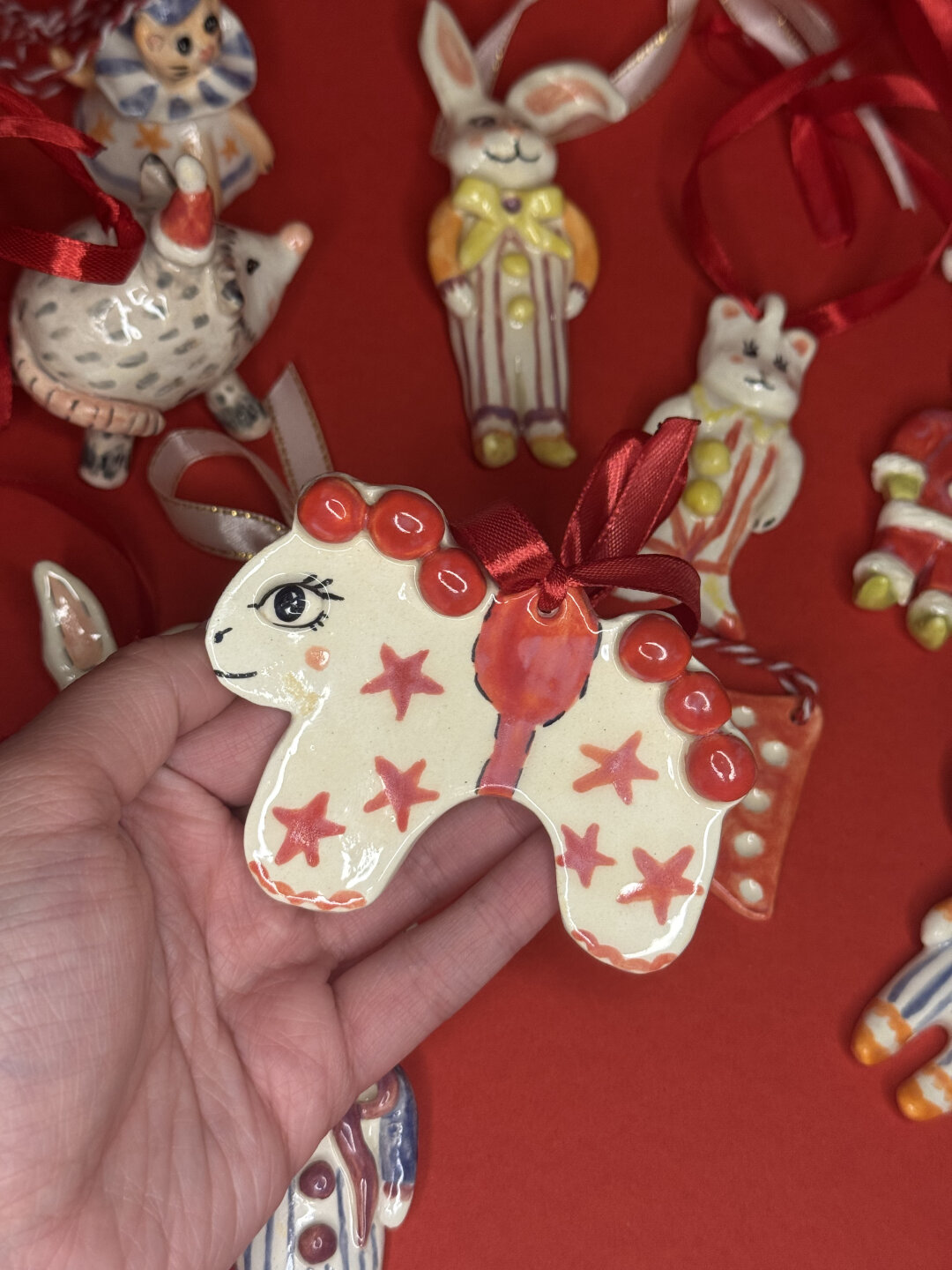 Глазурованные мультяшки из керамики хочется вешать на елку сразу и по очереди. Смешные котики с хитрыми усами, кони в звездах и даже сказочные которусалки – все уже готовы занять свое почетное место!
