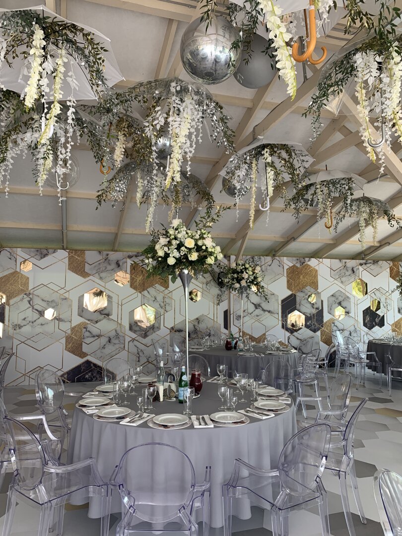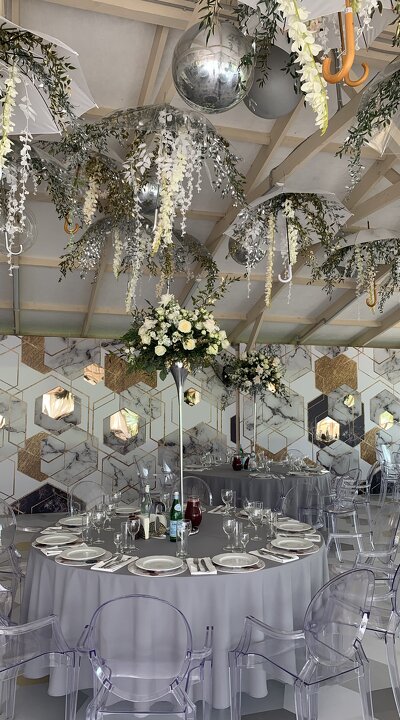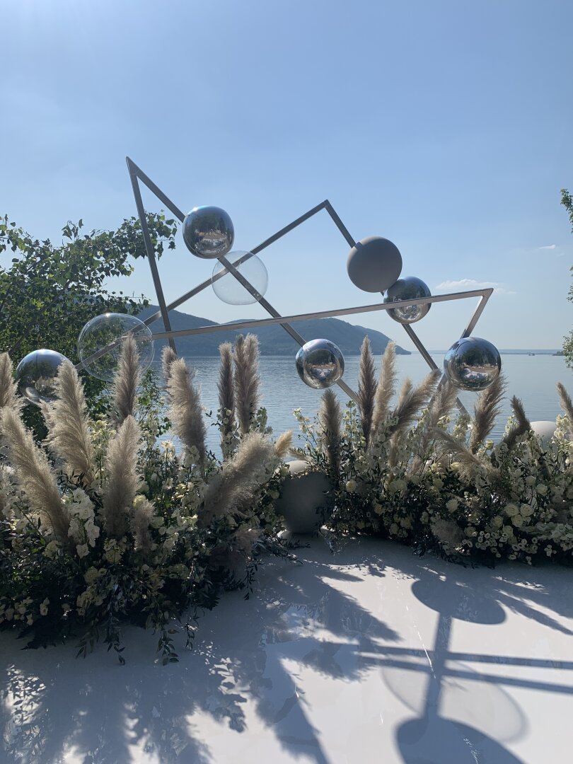 Цветы перестают быть просто декором – они становятся трехмерными объектами искусства. Так что смело добавляем крупные инсталляции и скульптурные формы в свой свадебный декор: от подвесных цветочных облаков, огромных арок и спиралей до композиций, интегрированных в архитектуру. Такие решения точно зададут атмосферу и станут главным визуальным акцентом свадьбы.