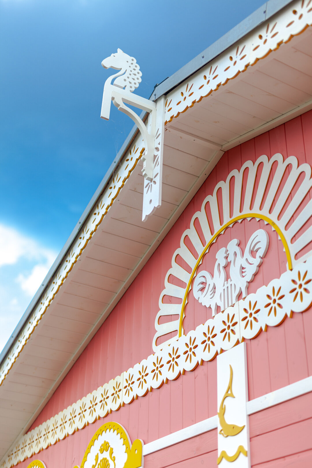 Наши домики – исключение. Сказочные узоры и богатое внешнее убранство – это то, что можно рассматривать часами с высоко поднятой головой! На самой макушке каждой постройки главенствует гордость хозяина: конек с резной гривой – и он всегда уникален! Он-то и вдохновил нас завести Висту.