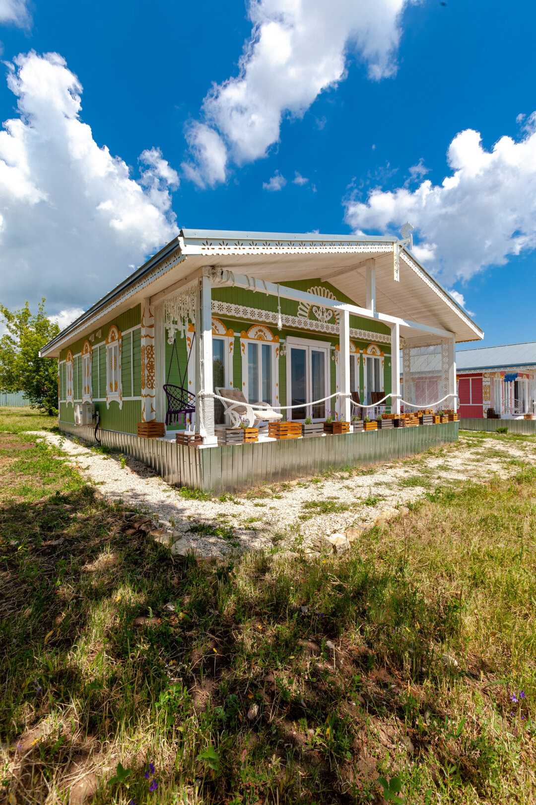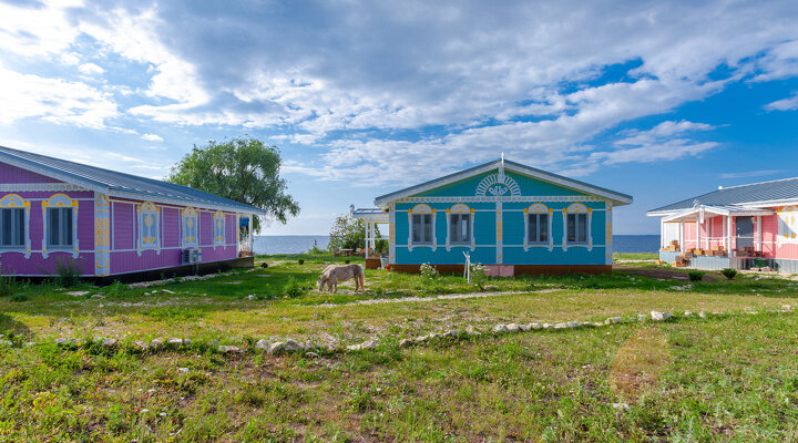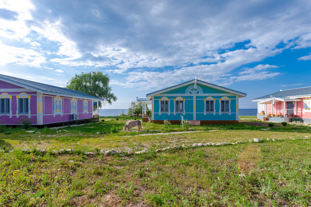 Бескрайний простор «моря» открывает матушку Волгу из этого укромного места в Саратовской области первозданно, живо и с размахом. На берегу в ряд расположились пять ярких домиков – четыре гостевых и один наш, семейный: и это вовсе не мираж, а гостевое пространство для тех, кто ценит деревенскую романтику. Мы с мужем не понаслышке знаем, что значит проснуться утром от пения петуха, поскольку сами являемся коренными деревенскими жителями.