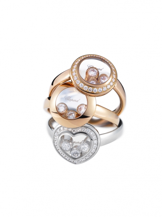 Чтобы бриллианты из коллекции колец Happy Diamonds скользили над сапфировым стеклом и не царапали его, каждый из них оправляется золотом в мастерской Chopard, а коническая форма обрамления позволяет им свободно двигаться и вращаться, блистая всеми гранями.
