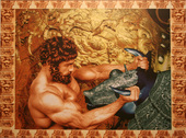 Компьютер мог помочь фальсифицировать перемещение во времени, произвести имитации документальных фотографий из поездок в прошлое, которых никогда не было. И я стала придумывать путешествия в разные эпохи, сделала первую серию «Отблески империи» в академическом стиле, а вернувшись в Петербург, открыла выставку этих работ в Этнографическом музее. Тимур Новиков, с которым мы к этому моменту очень подружились, сразу назначил меня профессором кафедры новых технологий созданной им Новой академии изящных искусств. Прекрасное было время: мы все были молоды и веселы, казалось, что этому не видно конца и впереди еще масса времени. Мы много времени проводили с Тимуром, невероятным, абсолютно гениальным человеком, и часами беседовали по телефону — с ним всегда было интересно.