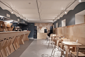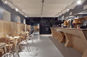 Принцип конструктора в действии: барные стулья убираются внутрь барной стойки и можно организовать пространство, например, для концертов и выставок. Свет организован таким же образом, как в галерейных пространствах. Идея была в том, чтобы использовать помещение как бар, кафе, концертную, выставочную и площадку для кинопоказов.
