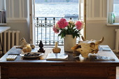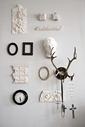 Практически все элементы интерьерного дизайна — результат ручной работы. Например, пластиковые люстры с подсвечниками делали на заказ по моим эскизам, так же как и ширму, которая служит примерочной. Антикварные стол и сундук мне достались в наследство от бабушки с дедушкой, и я решила, что здесь им самое место. А вот два стула, напоминающие трон, нам подарил один петербургский арт-деятель. Мне близок скандинавский дизайн, и в память о нем на стене появились оленьи рога. А фрагменты панно из гипсовых элементов фасада здания — подарок моего преподавателя из Академии.