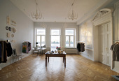 Идея открыть свой магазин с марками молодых российских модельеров — от osome2some и Cat's Production до Olga Polikarpova и Greatcriss — родилась у нас с художником по костюмам Вероникой Топычкановой после успешных маркетов одежды и аксессуаров. Помещение нашлось быстро, в арт пространстве Taiga на Дворцовой набережной, и я приступила к разработке концепции дизайна. Главной задачей было не изменить уже существующий интерьер, а лишь поддержать его. На все ремонтные и строительные работы у нас было не больше месяца. Поскольку мы были весьма ограничены в бюджете, то старались использовать самые простые материалы, которые бы органично сочетались друг с другом. В целом интерьер получился легким, эклектичным и самобытным. Удалось сохранить присущую месту дворцовость и прозрачность.